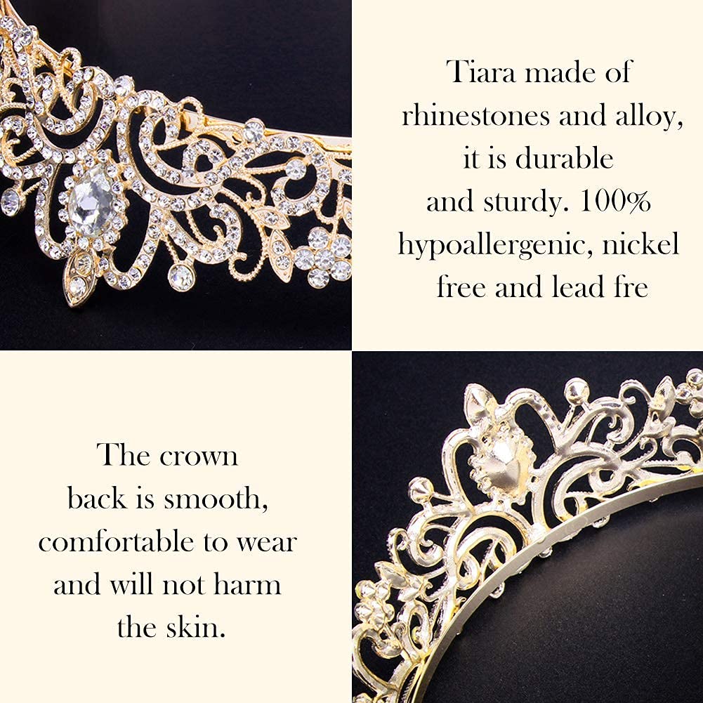 COCIDE Gold Tiara Crystal Crowns