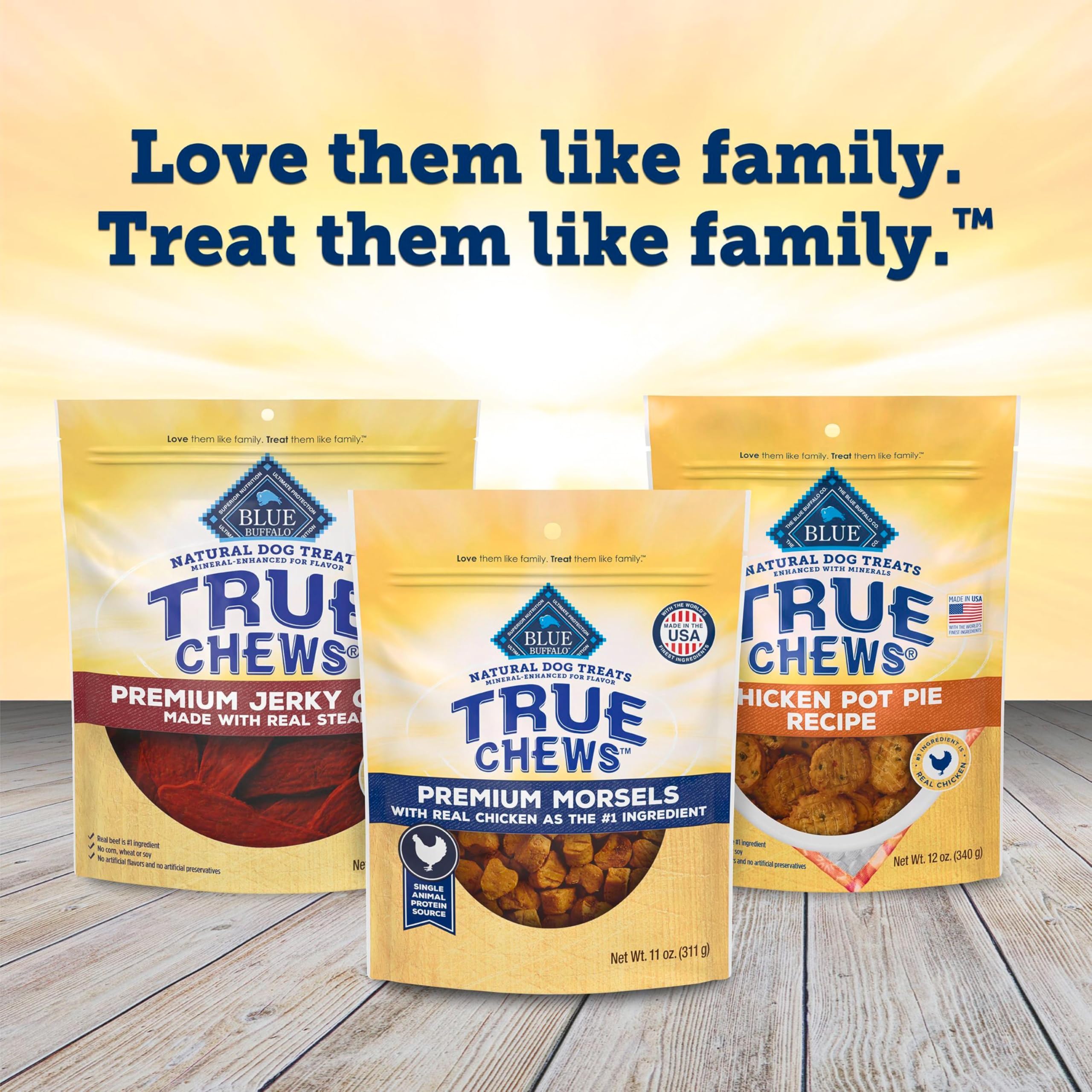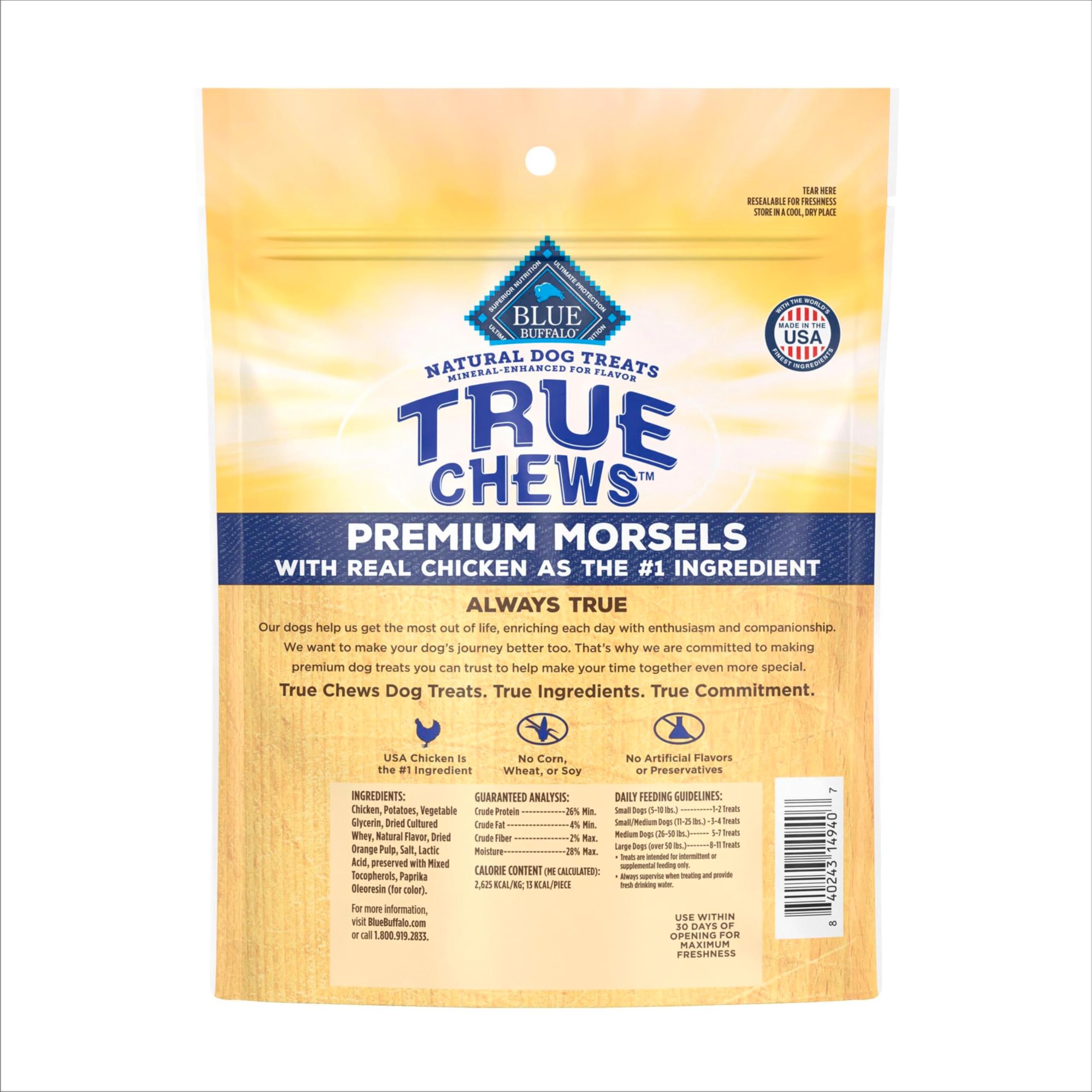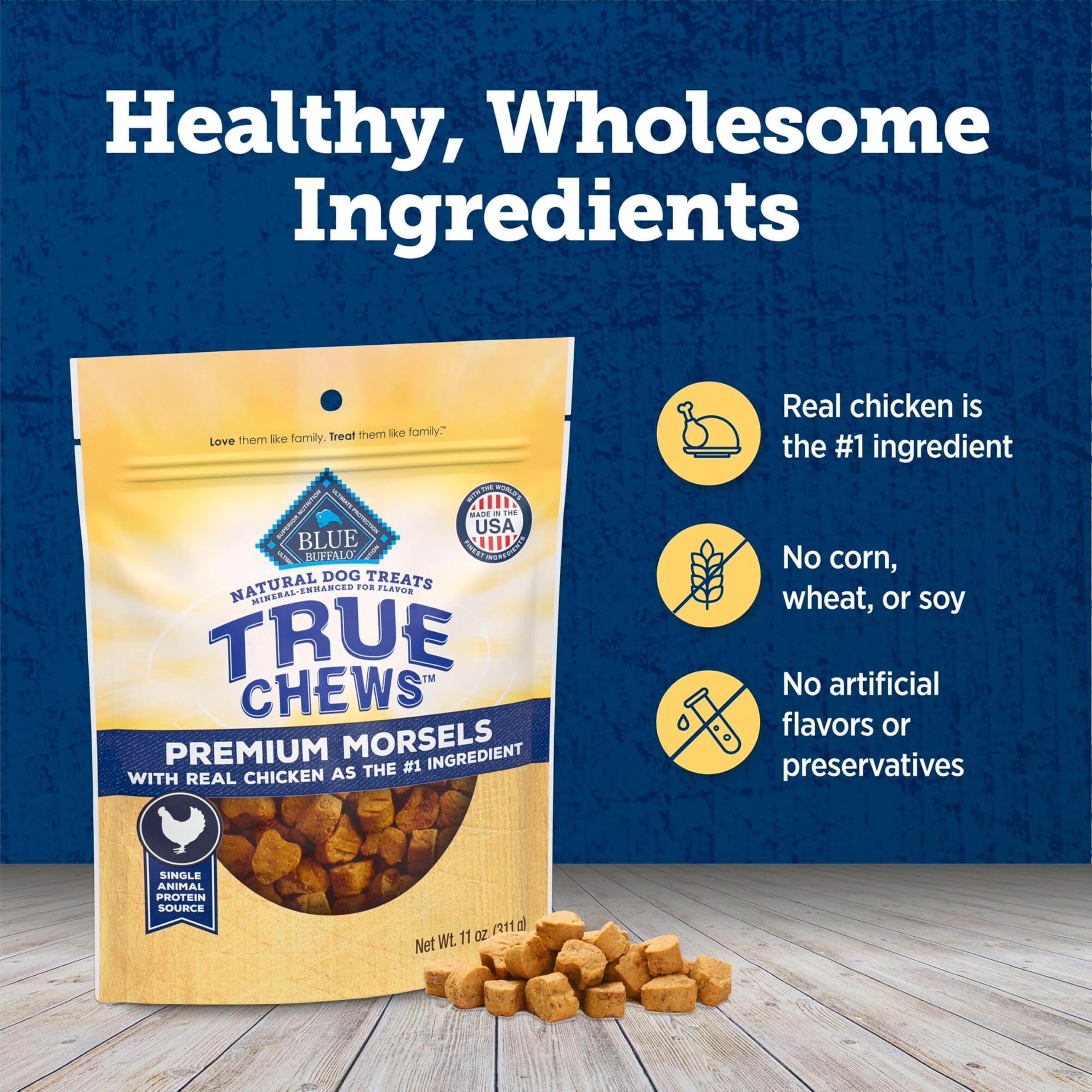 PACKAGING MAY VARY: Contains One (1) 11 oz bag of BLUE True Chews Premium Morsels Natural Dog Treats, Chicken