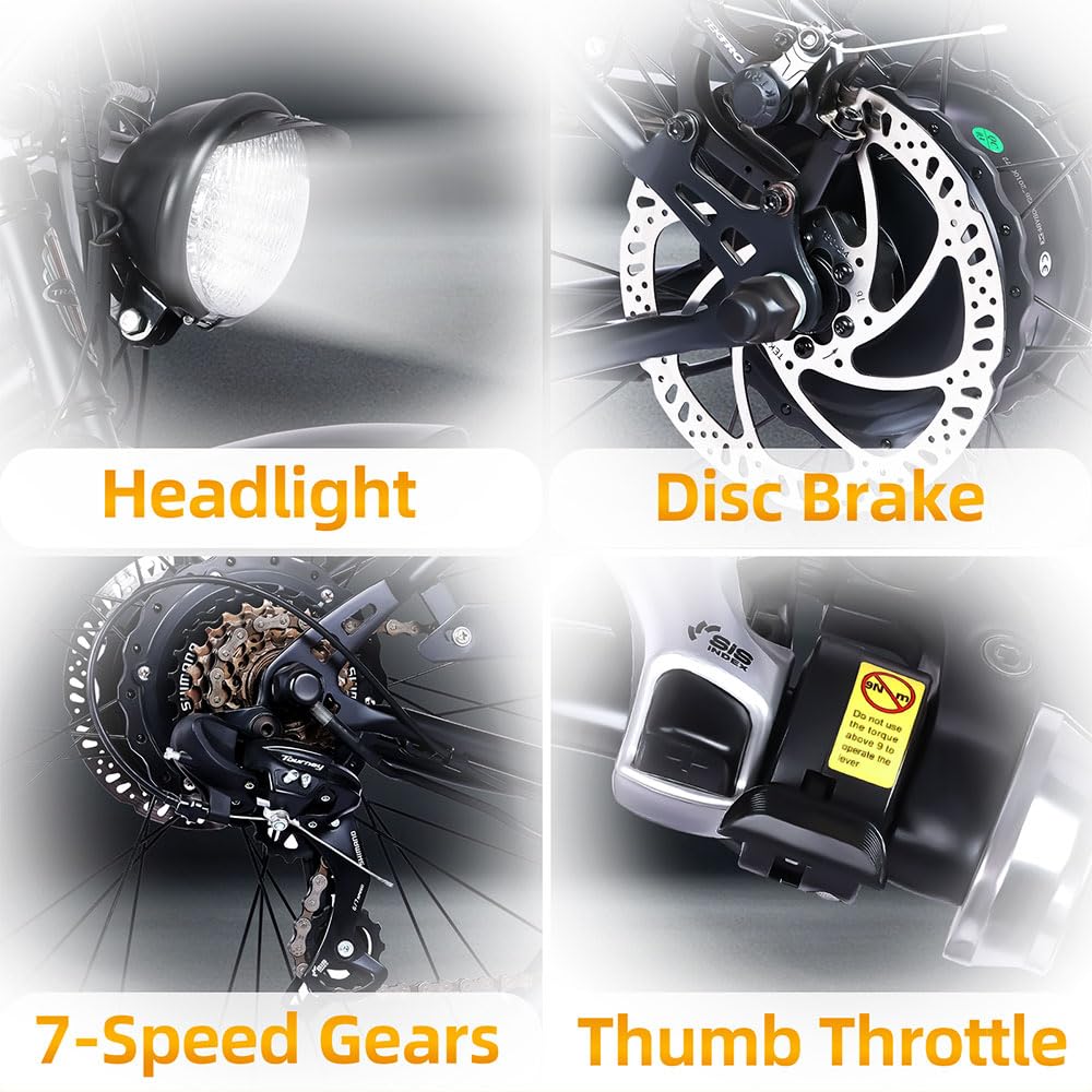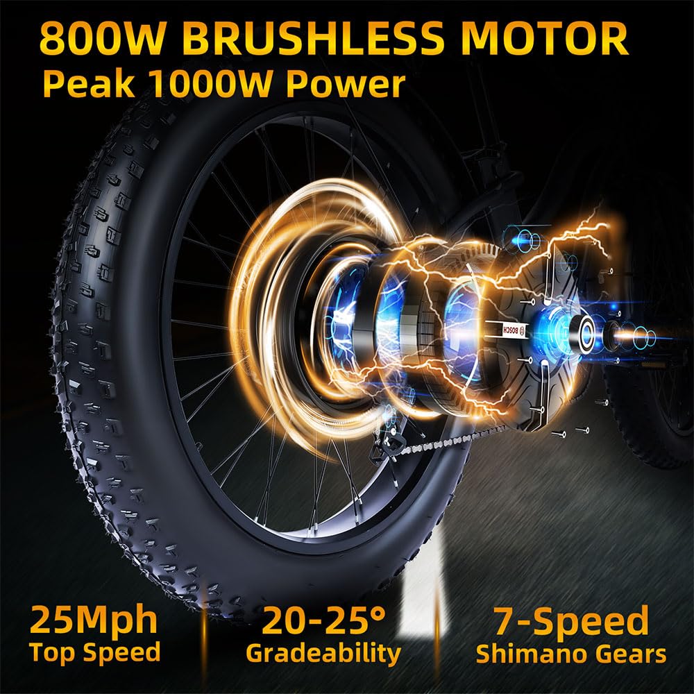 Powerful Electric Support: 800W high-speed brushless motor with throttle system.