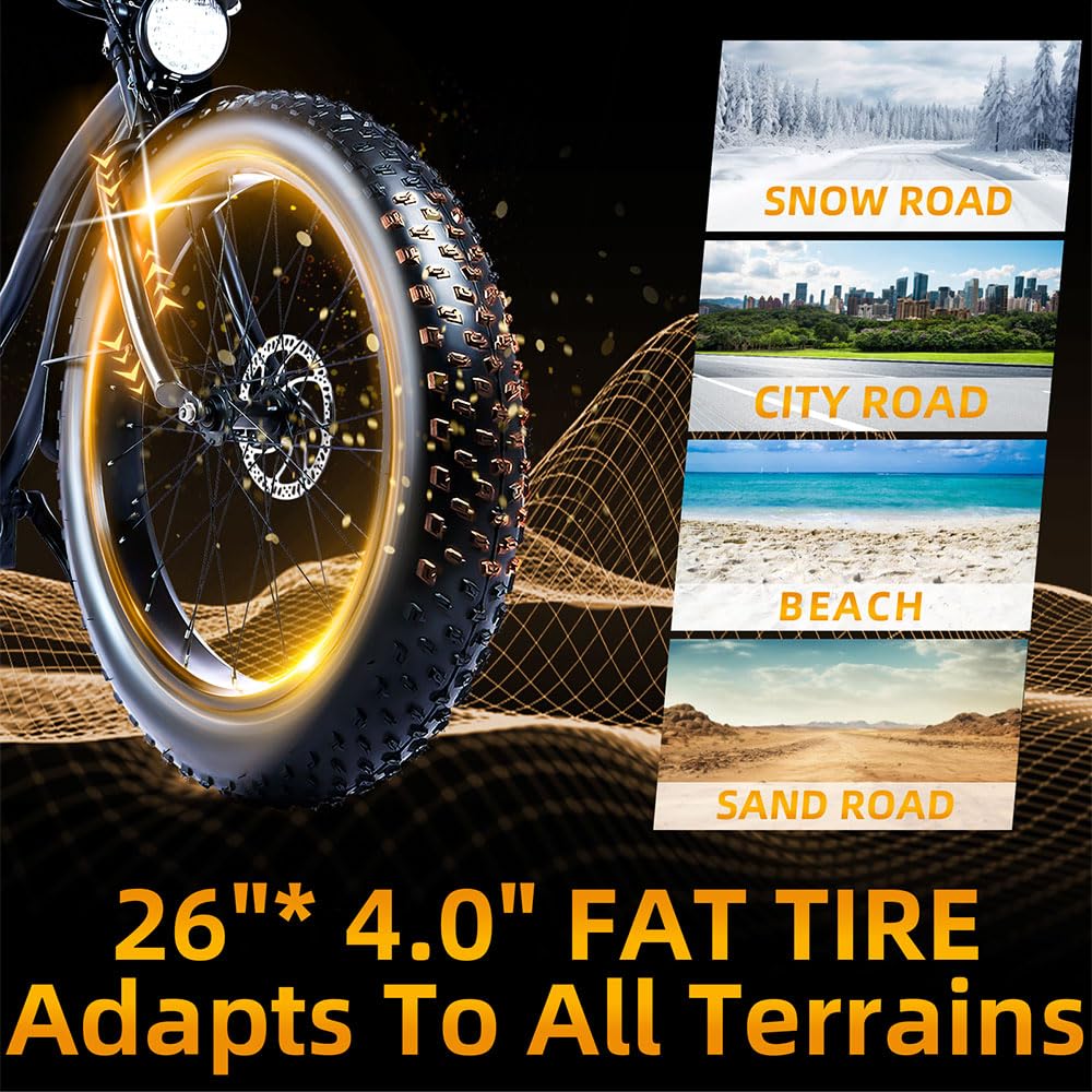 Comfort and Performance: 26'' x 4'' fat tires and alloy rims for a smooth ride.