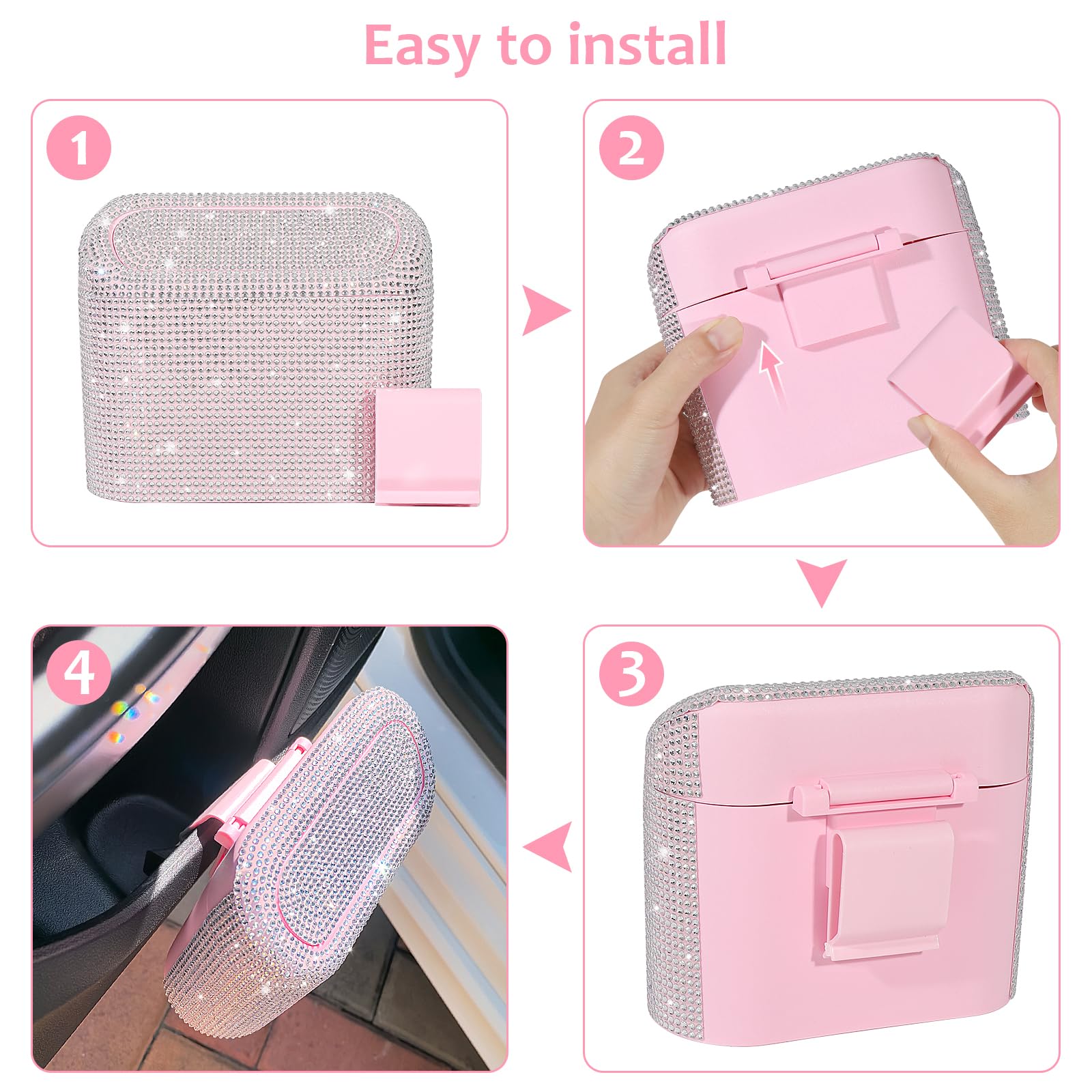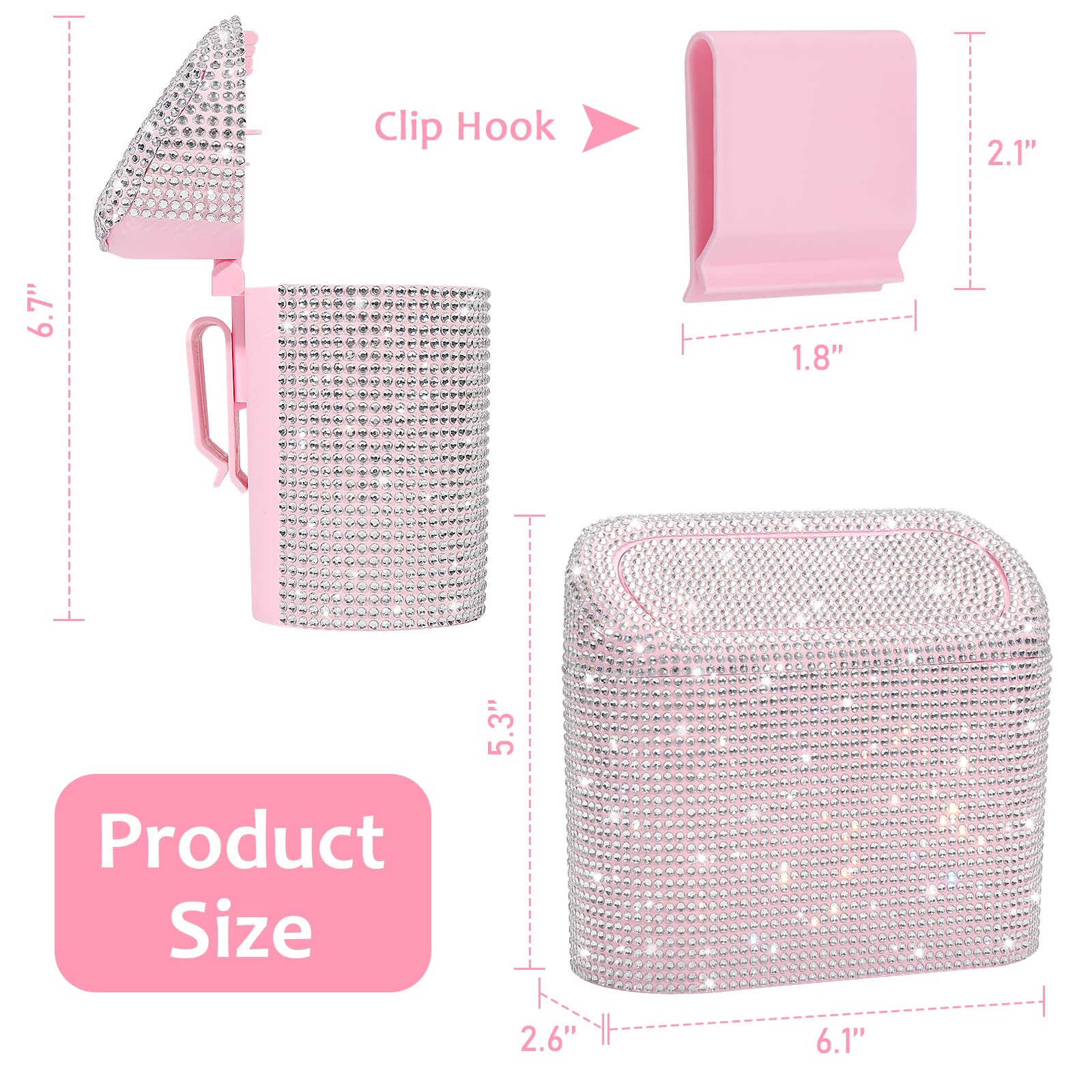 Suit for Any Vehicle: This bling rhinestone covered trash can with perfect size fit for most type of vehicle, such as cars, trucks, minivans, SUVs, RVs, boats, cabs and more