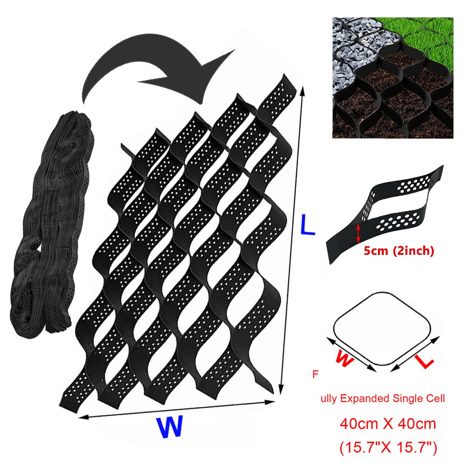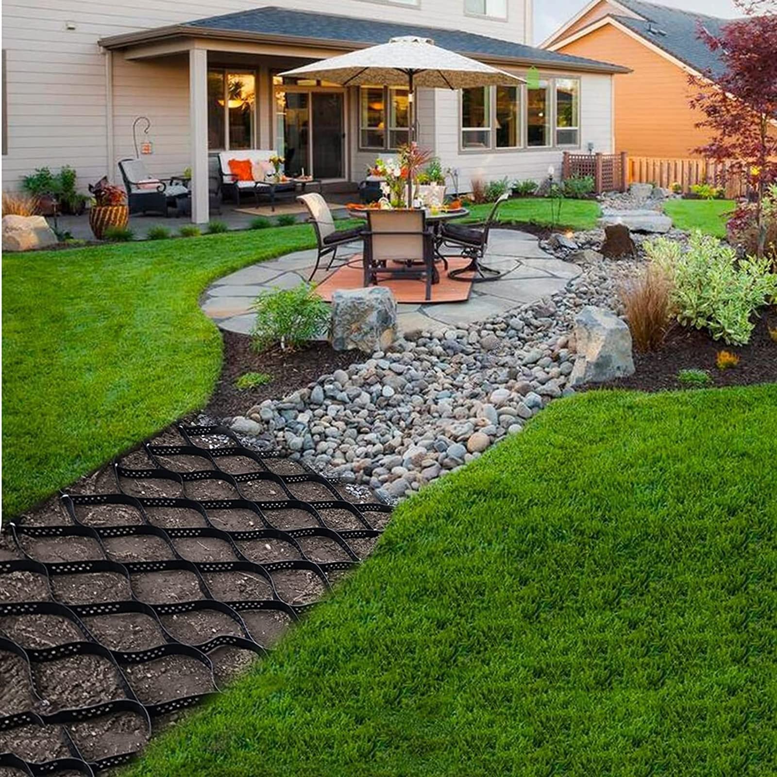 【Scalable & Expanded】The geo grid path can be expanded and folded for easy use and storage. It works on slopes and can be cut and attached. for steep driveway, driveway, shed base, patio, gravel, dirt, walkways, garden, etc.