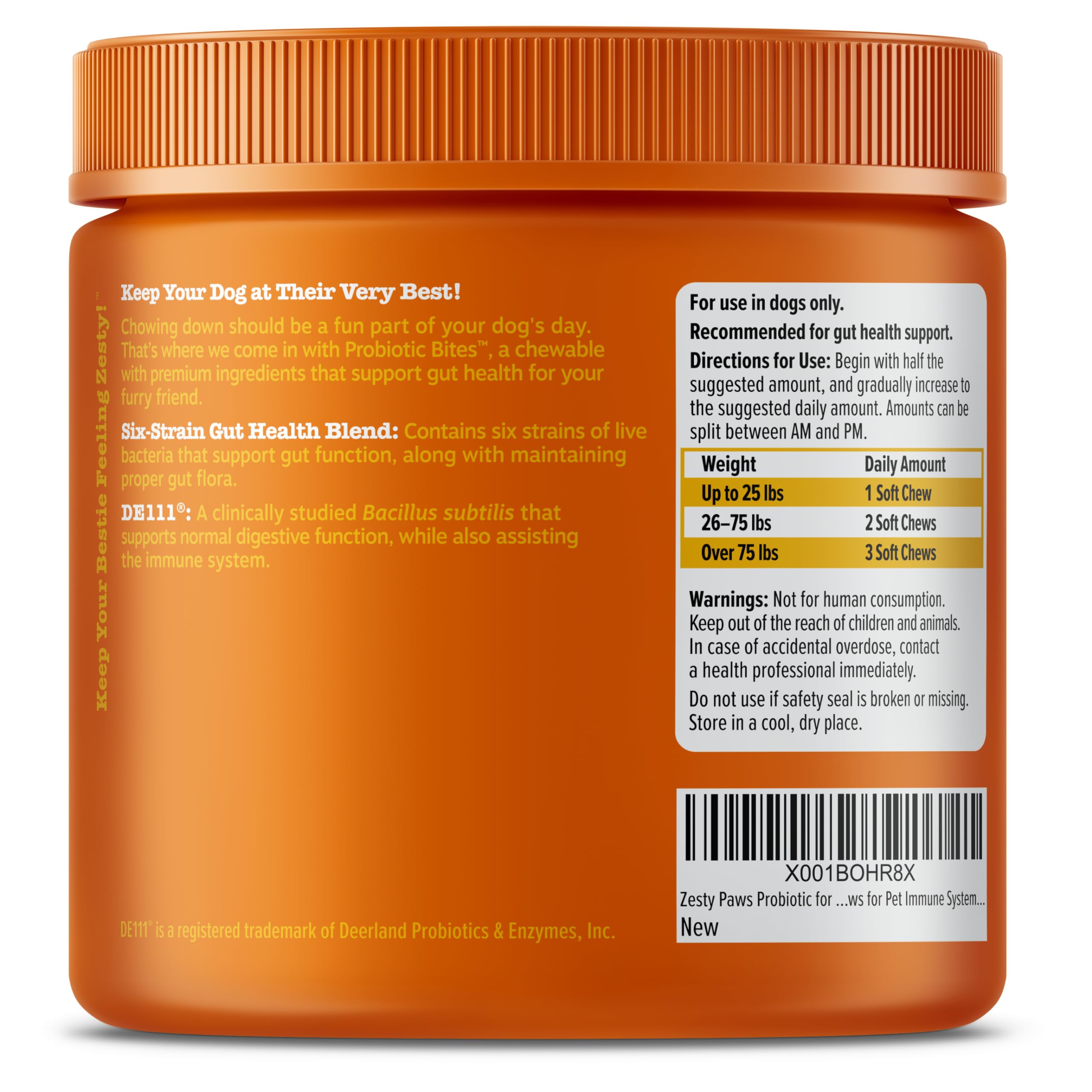 Featuring DE111 - This chewable supplement contains DE111, which is a clinically studied Bacillus subtilis that supports gut health and immune system function for your doggy.