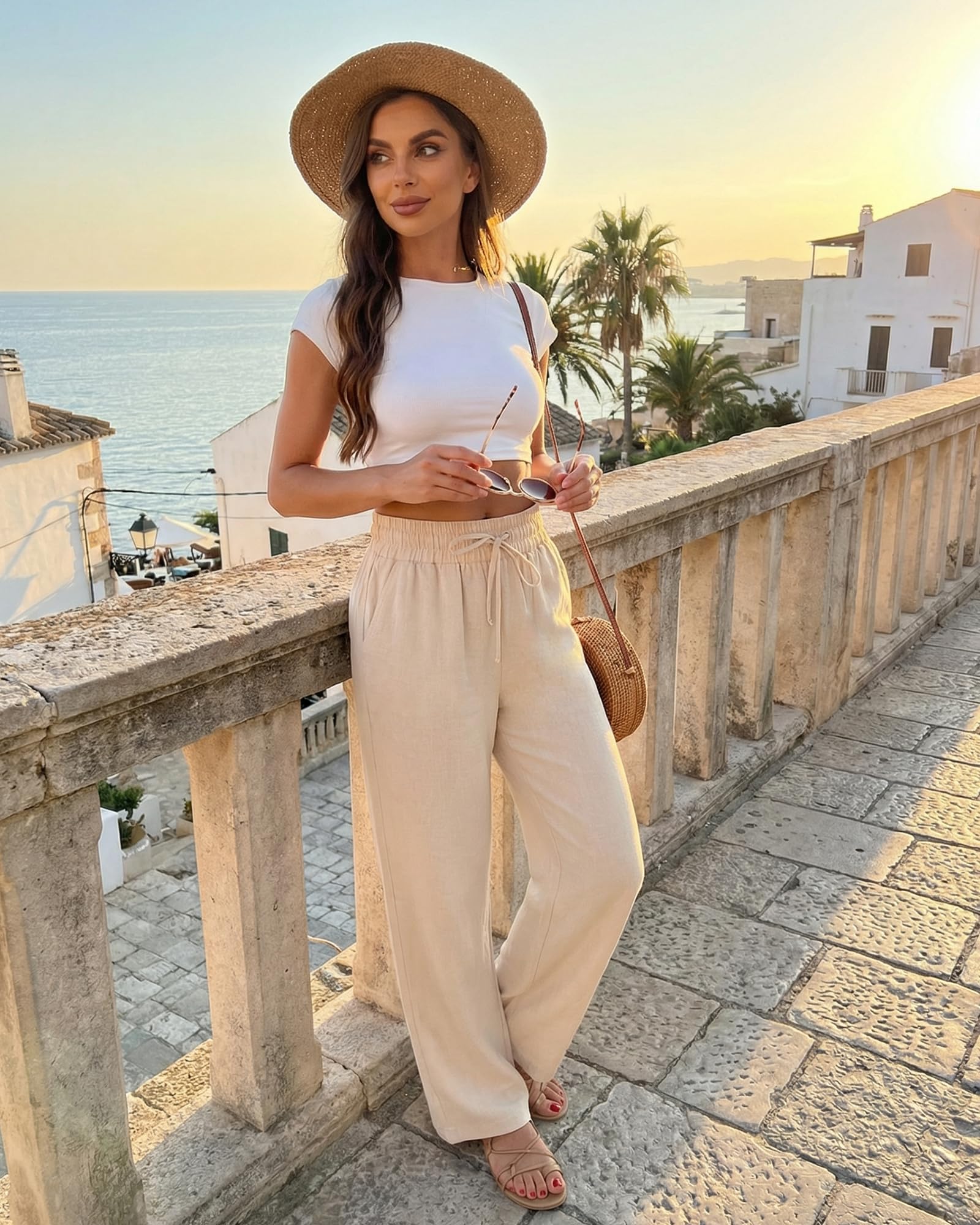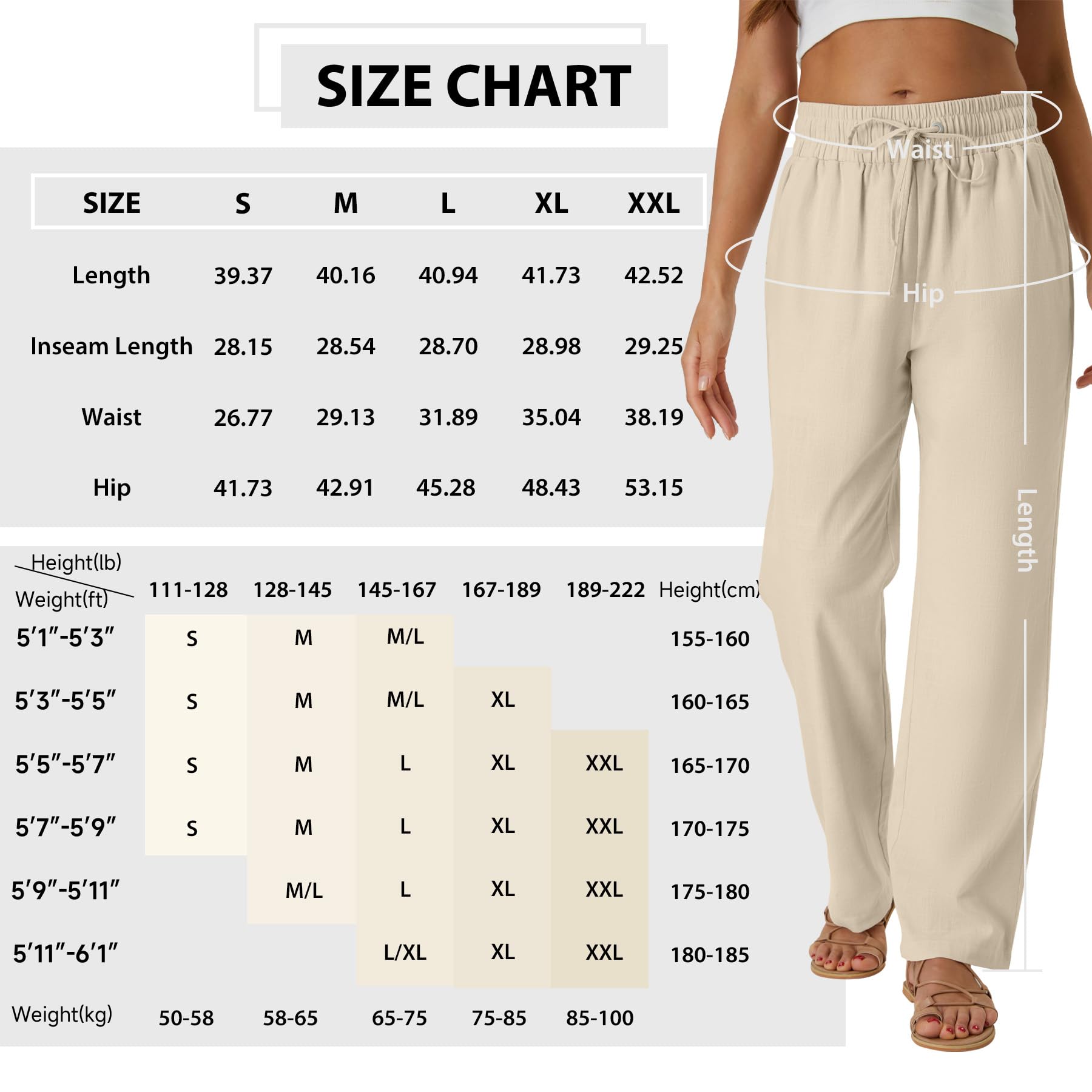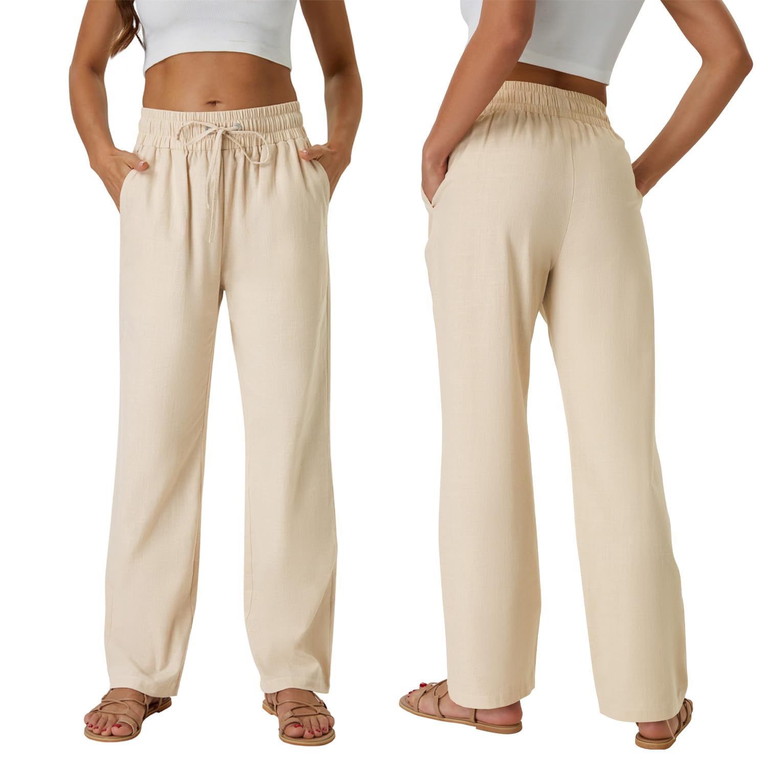 【Match】 : Women's casual linen pants are a very basic style that can be paired with a variety of different styles and fabrics of tops. They can be paired with a T-shirt,button down shirt,blouse,tank and so on. In short, linen pants are very versatile and can be paired with different styles of tops according to personal preference and occasion.