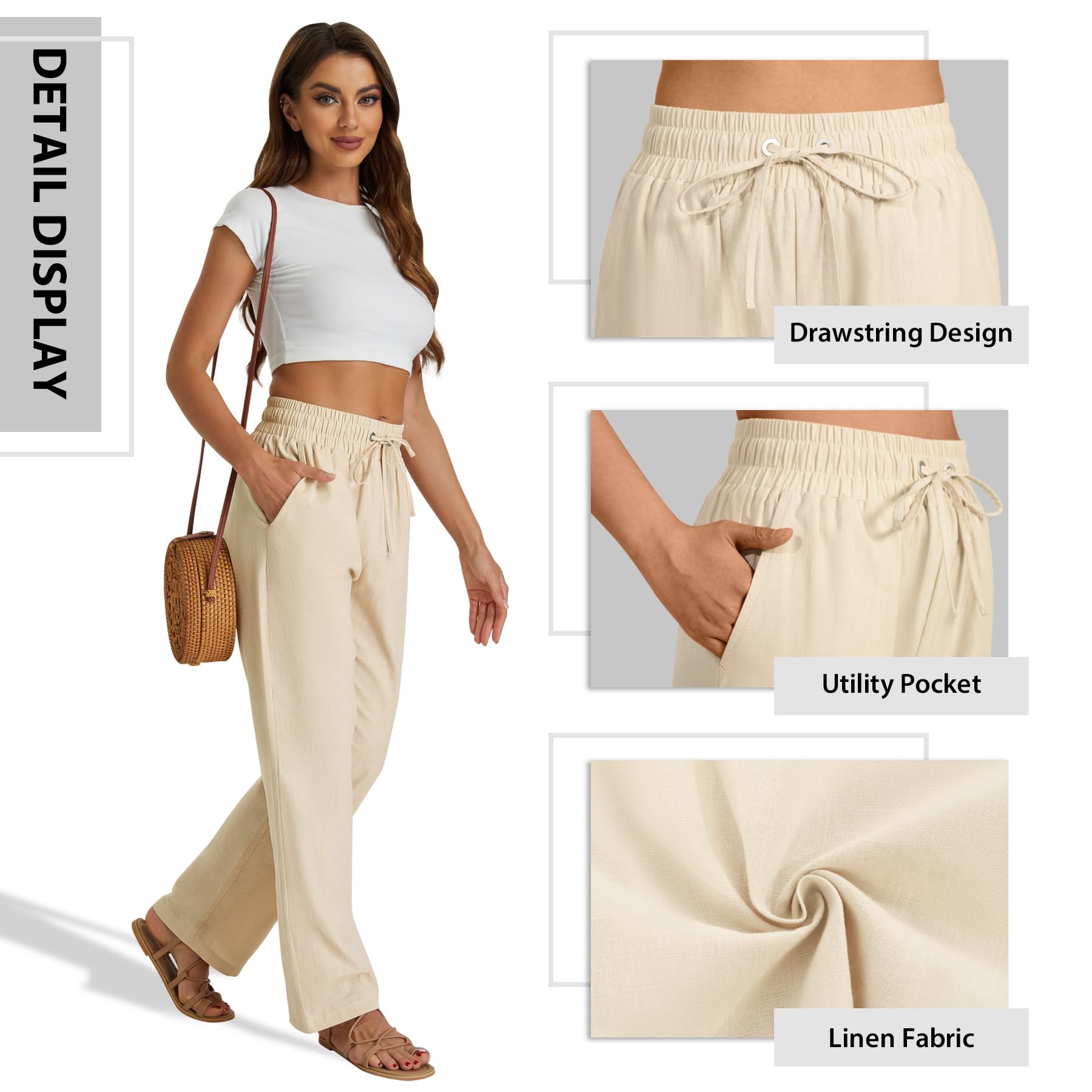 【Fabric】: Women's high waist casaul pants are made of nylon and linen. Made of this soft, skin friendly linen fabric, our women's casaul high waisted pants are lightweight and breathable, ensuring a comfortable wear experience all day.