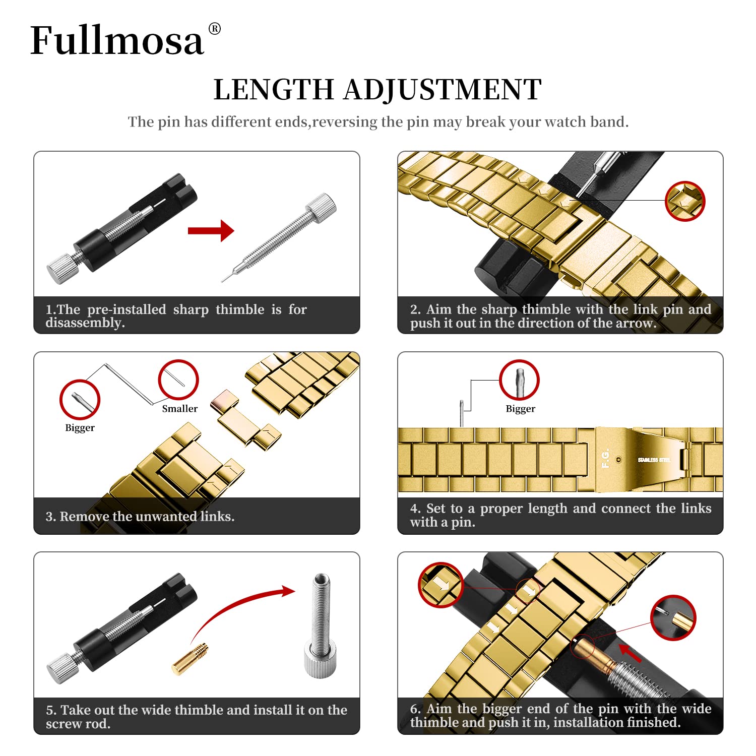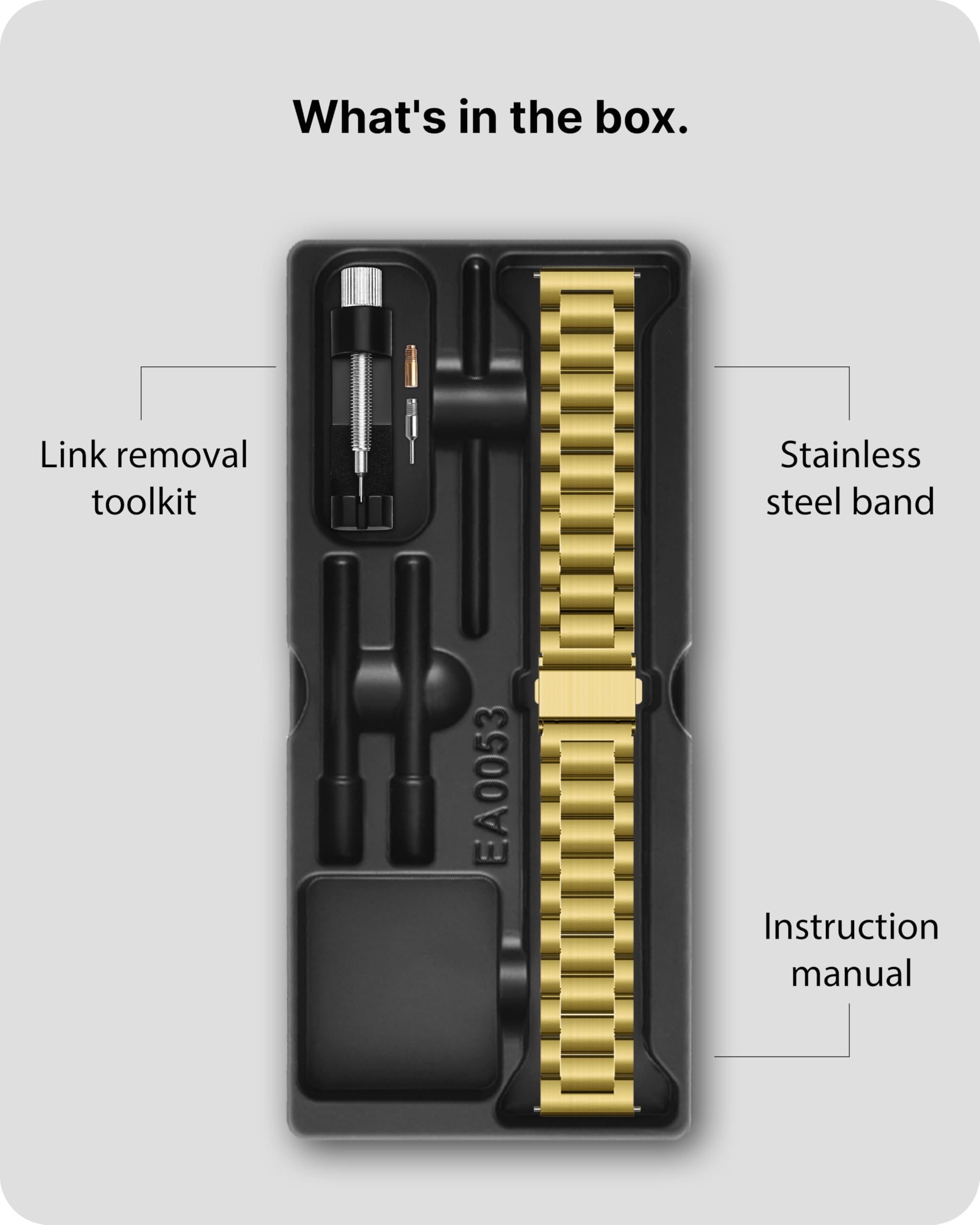 What You Get: 1*20mm Stainless Steel Watch Band, 1*Quality Control Card,1*Link-remove Tool, 3*Quick Release Pin. Note: Quick release pins are included separately and require installation. Slight color differences may occur due to varying monitor displays; actual product color should prevail
