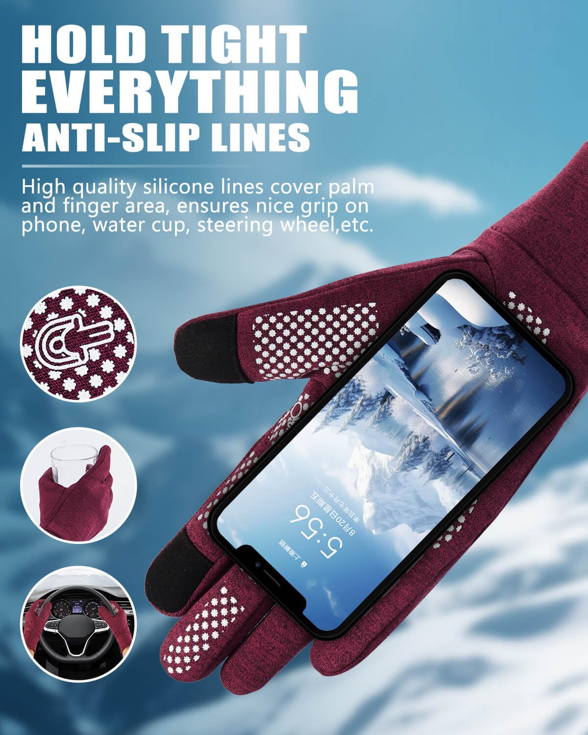 🏃【Non-Slip Palm Design】 Covered with anti-slip design of big silicone lines on the palm and fingers, which effectively increases the grip and abrasion resistance of Aegend thermal winter gloves. You can grip things firmly to ensure safety. Such as gripping the steering wheel firmly when driving, and holding your phone well to prevent it from falling and breaking.