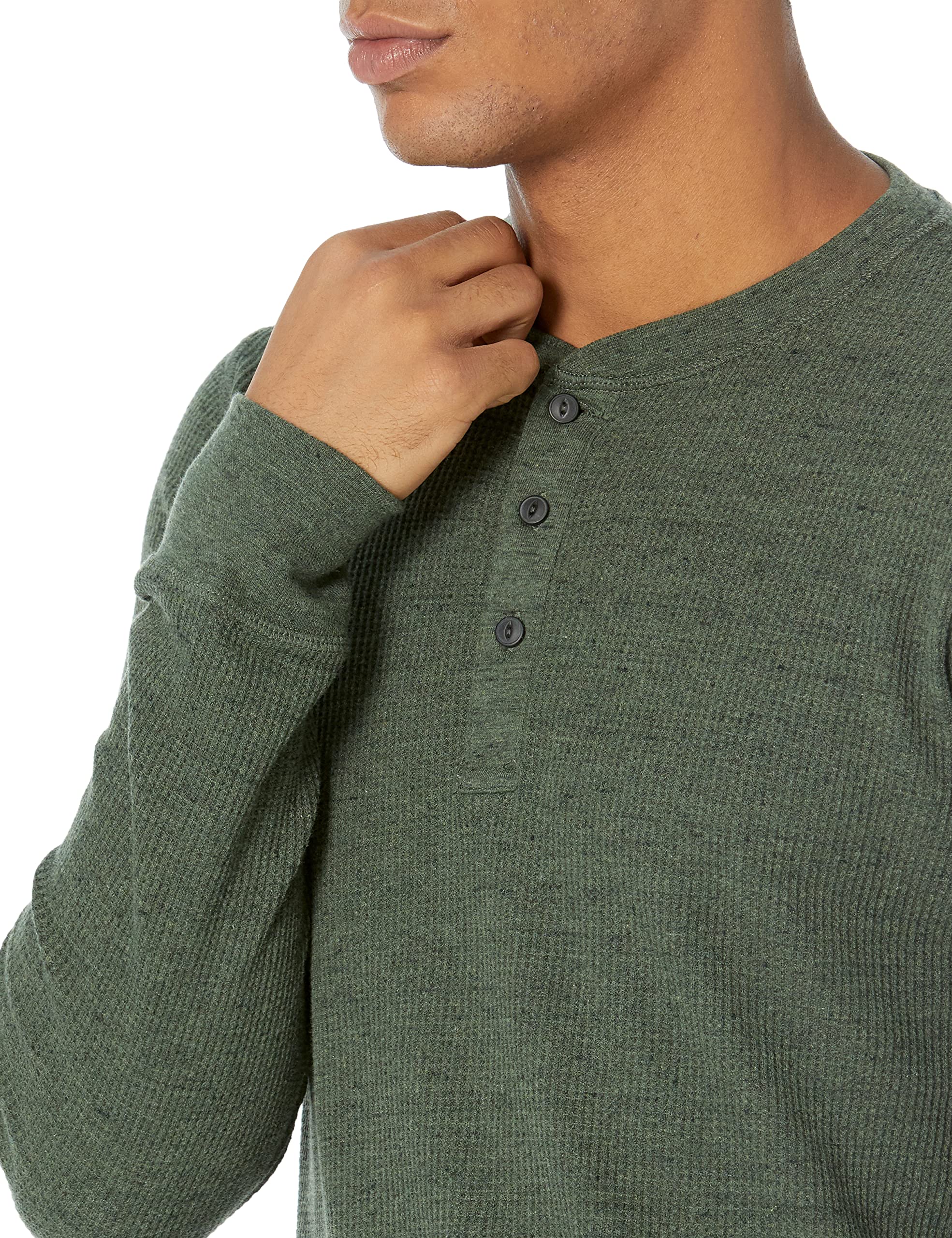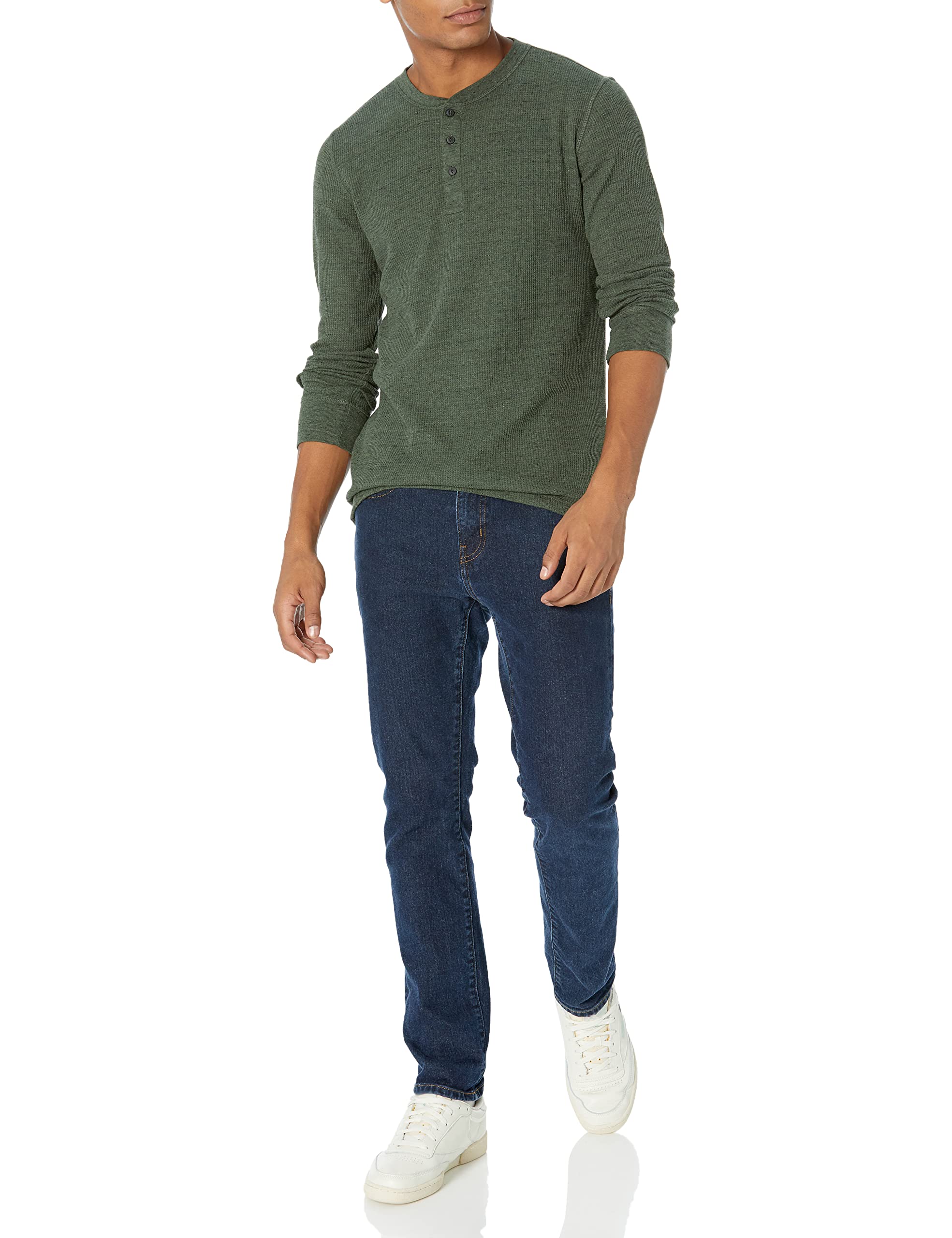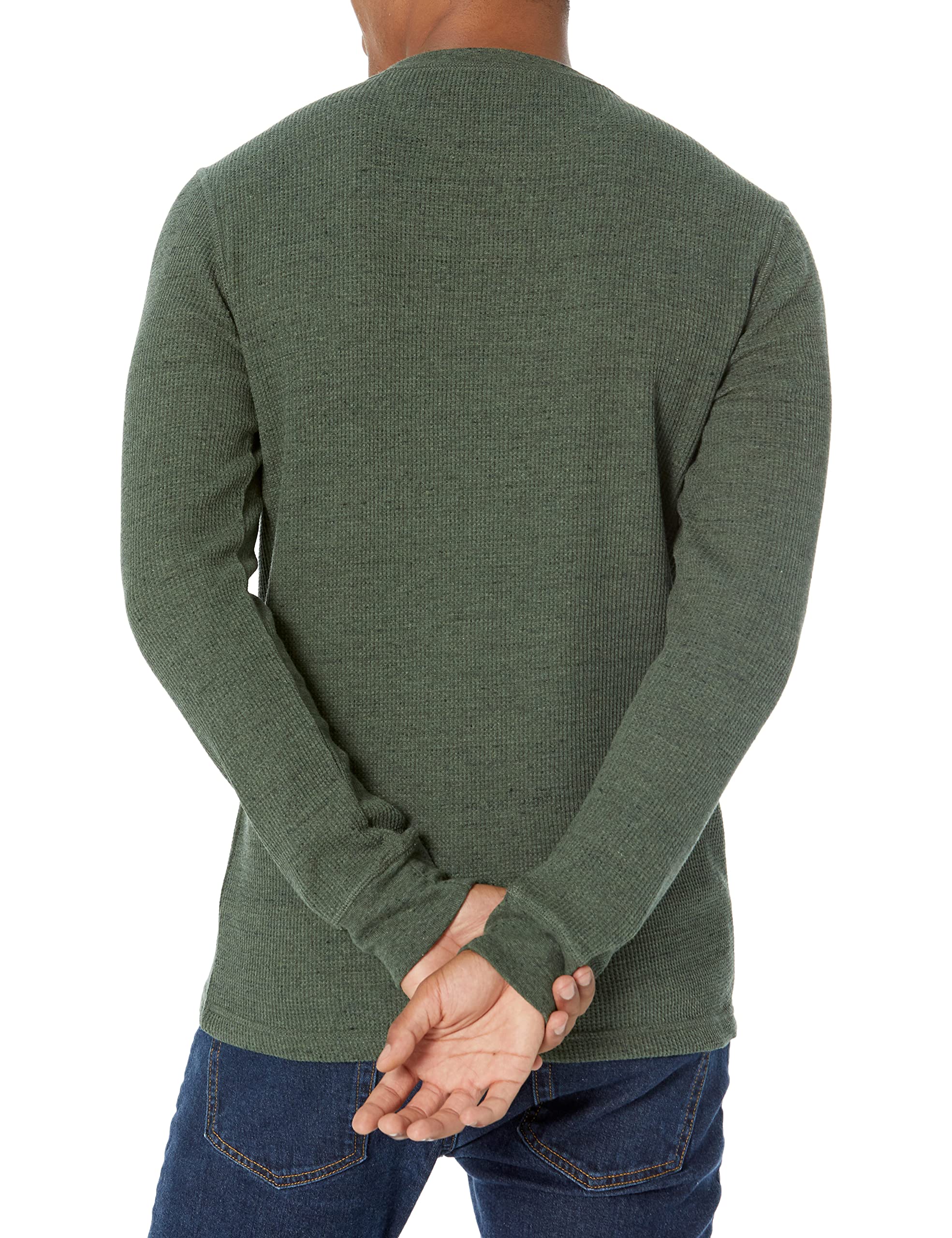 Description This henley long sleeve shirt for men offers a refined slim fit through the shoulders, chest, and waist, creating a sleek silhouette that's great for both work and play. Crafted from a soft cotton blend, the lightweight waffle thermal texture provides warmth and breathability, making it an ideal choice for layering or wearing on its own. Designed to be an everyday essential, these men's casual long sleeve shirts are versatile, pairing effortlessly with jeans or chinos for a look that is both polished and relaxed. With thoughtful detailing like ribbed trim at the neckline and sleeve cuffs, plus a three-button placket, this men's long sleeve henley shirt showcases both functionality and fashion. Our collection of men's waffle long sleeve shirt options redefines casual wear with enduring quality you can trust.