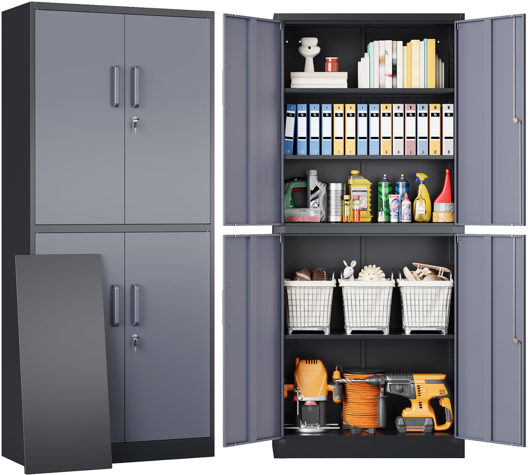 【Upgraded 3pcs Adjustable Shelf 】Metal storage cabinets come with locks and 3 adjustable garage shelving for adaptability and convenience, locking storage cabinet to protect valuables, two keys are included. Whatever your storage needs, you can create a unique storage space that suits them