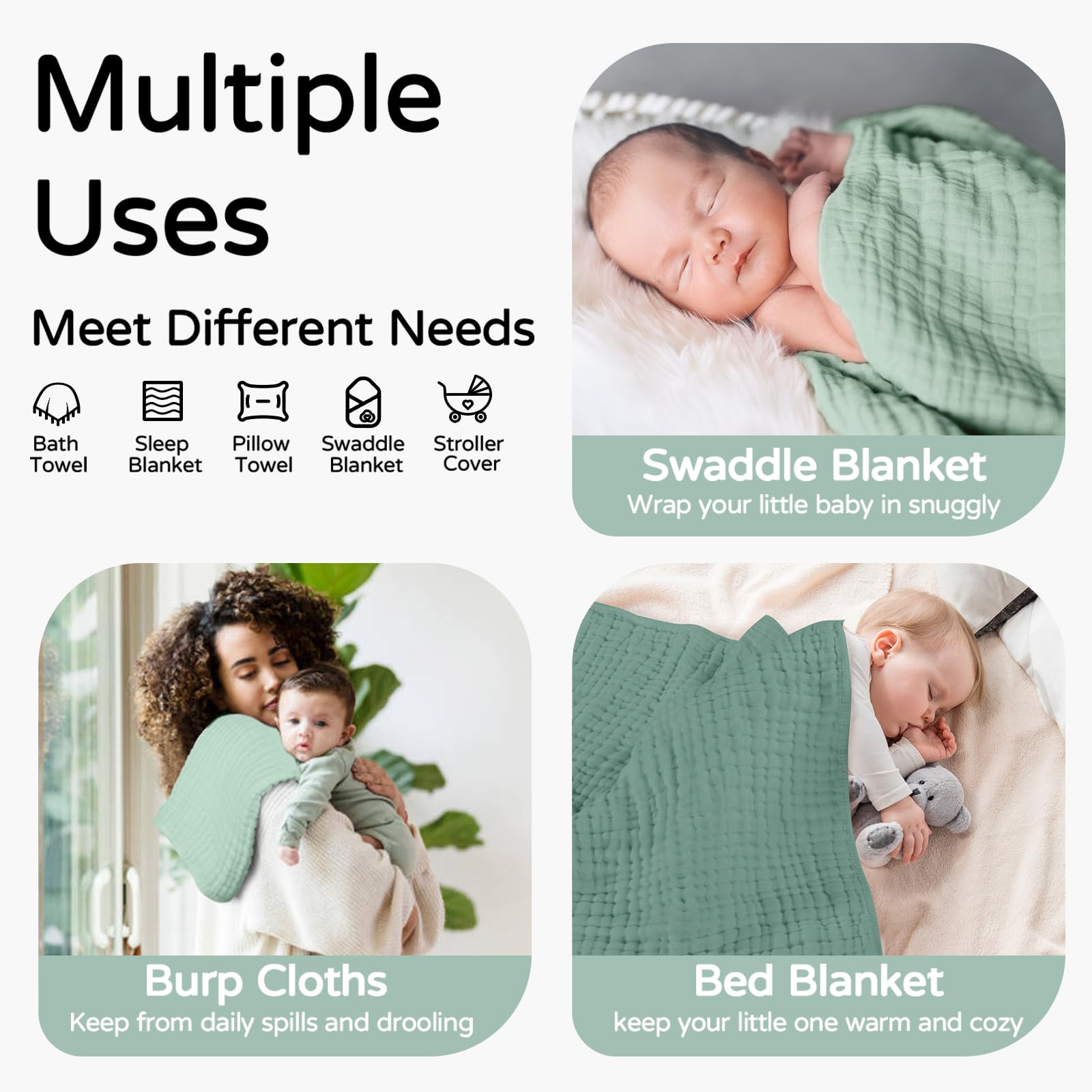 [Soft and Absorbent] - 100% high quality muslin organic cotton, the best fabric for babies, makes the baby bath towel super soft than regular cotton towel. It absorbs the water off baby quickly and keeps baby warm after baths.