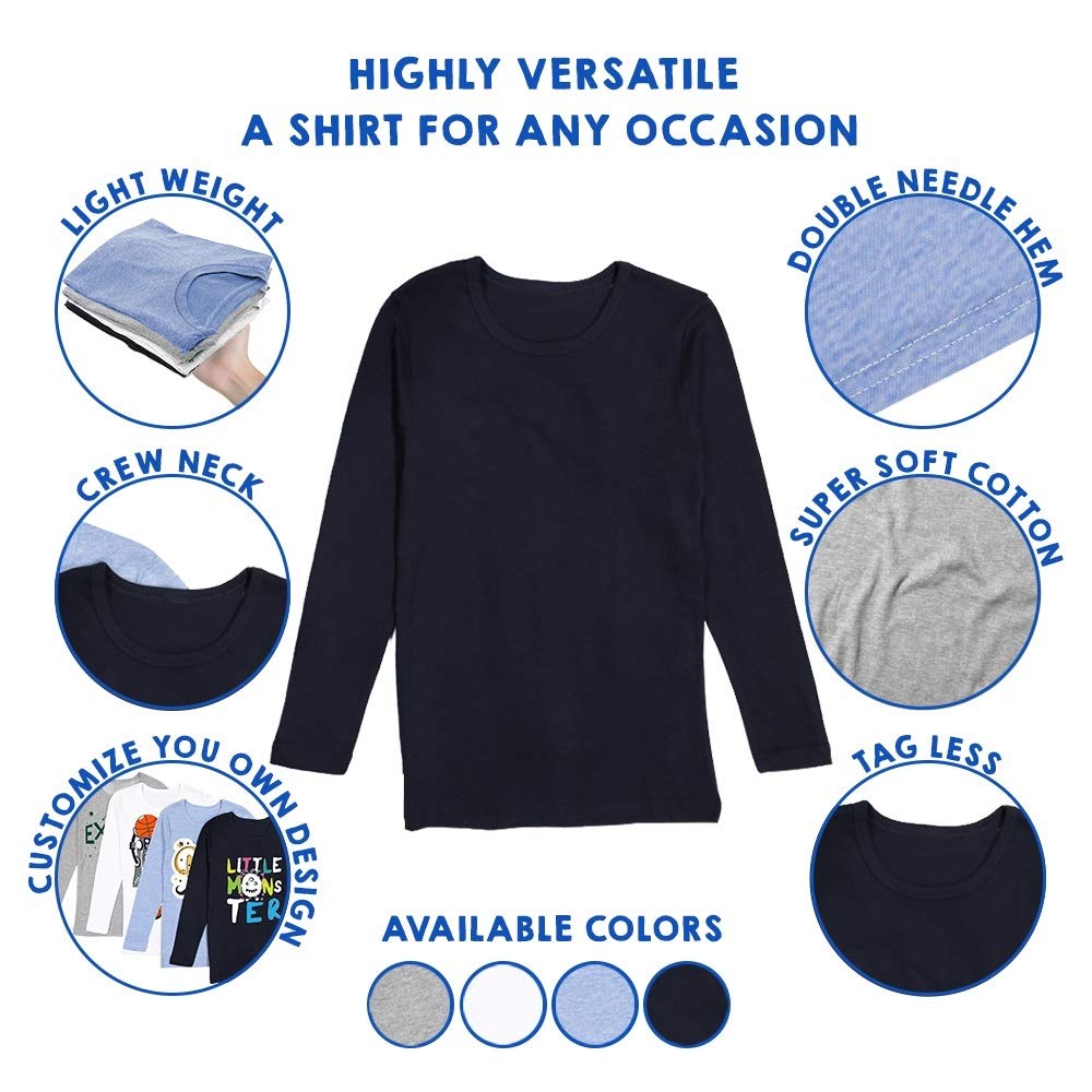 Premium Basic: 100% Cotton Toddler and Boys Crewneck Long Sleeve T-Shirts.-Made with soft and breathable cotton fabric for lasting durability and comfort. Multipack Value of 4 Tees - Sizes 2 Years - 18 Years