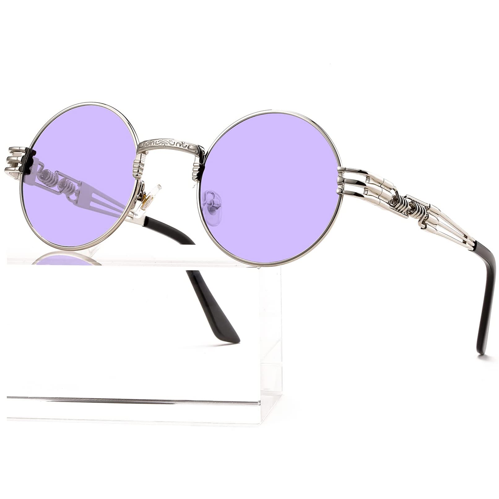 ☀CIRCLE FULL METAL FRAME DESIGN: The round sunglass uses a full stainless steel metal frame, reinforced metal hinges, soft nose pad materials, spring temples, and the overall classic steampunk design makes you more natural and beautiful when you wear it.
