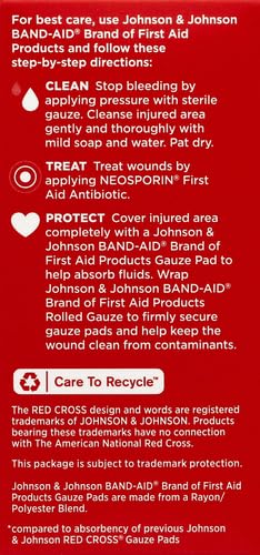 A covered wound heals faster than an uncovered one. Band-Aid Brand Cushion-Care Gauze Pads are designed to protect minor cuts, scrapes and burns. Made with unique Quilt-Aid Technology, these individually-wrapped sterile gauze pads feature deep pockets to wick away fluid from wounds to help keep them clean. Cushion-Care Gauze Pads have 8 thick layers of soft cushioning for extra comfort. These medium square sterile pads are 3 inches x 3 inches in size and can be used with Band-Aid Brand of First Aid Products Flexible Rolled Gauze to firmly secure the non-stick gauze pad in place. From the #1 doctor-recommended brand, these non-adhesive gauze pads are essential first aid supplies and not made with natural rubber latex.