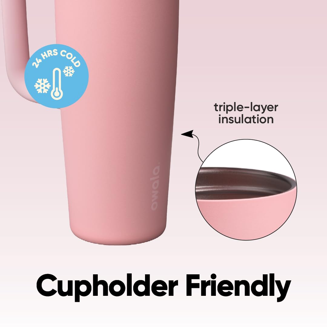 The Owala FreeSip Insulated Stainless-Steel Water Bottle with Locking Push-Button Lid easily tackles every thirst. With a built-in, easy-clean straw and a wide-mouth opening, the FreeSip reusable bottle is designed for drinking two different ways: sipping upright through the straw or tilting back to swig from the wide-mouth spout opening. Add in a push-to-open lid and playful colors, and staying hydrated has never been simpler—or more fun. Additional features include double-wall insulated stainless steel that keeps drinks cold up to 24 hours, a carry loop that doubles as a lock, a cup holder-friendly base, and a wide opening for easy cleaning and adding ice. The Owala FreeSip Insulated Stainless-Steel Water Bottle with Locking Push-Button Lid is available in three sizes: 24-Ounce, 32-Ounce, and 40-Ounce. Lid is dishwasher safe; hand wash cup. Not for use with hot liquids. Manufacturer’s limited lifetime warranty.