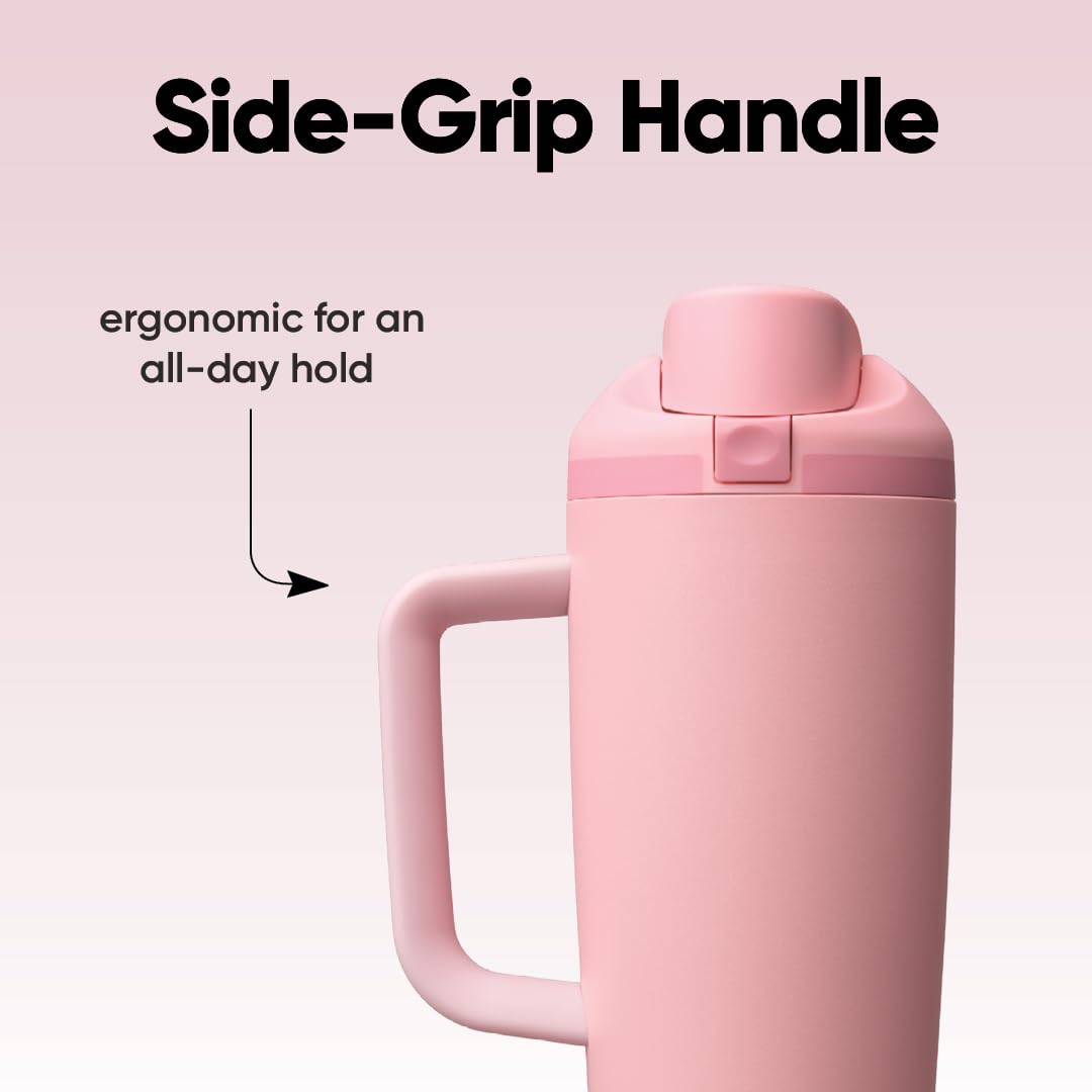 30-ounce insulated stainless-steel tumbler with FreeSip spout and push-button lid: For serious hydration; durable, unique design and patented spout; convenient push-button lid for easy opening