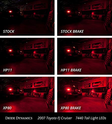 Features Modern LED appearance with instant on and off. Compatible with Toyota FJ Cruiser tail light bulbs. Plug and play no modification with factory 7443 bulb size. Multiple brightness levels available. Overview LED Indicators. The factory incandescent tail light bulbs on your vehicle light up in a glow which takes a moment to turn on. A modern LED upgrade provides instant response which can alert other drivers on the road earlier while also providing a modern LED appearance. This brake light LED is a great upgrade for your vehicle in both style and function. Brightness. All Diode Dynamics LED lighting is rated with accurate measured lumen figures not calculations or guesses. We test the true output in-house and provide you the real numbers to compare. Correct Color. Since the lens on your tail light housing is red you'll see that we only offer a red color option which is correct to SAE/DOT red requirements. Red is the correct emitter color for maximum brake light output on your vehicle. Reliability. Diode Dynamics LEDs are built with constant-current inductive circuitry along with transient suppression. They are tested by our engineering team with a device that replicates years of voltage spikes like the ones generated each time the alternator starts and stops on your vehicle. This is what kills most LED bulbs over time but just like factory components Diode Dynamics LEDs are designed with built-in circuit protection. While more expensive than simple bulbs this allows Diode Dynamics LEDs to last for years with no flickering or failure.