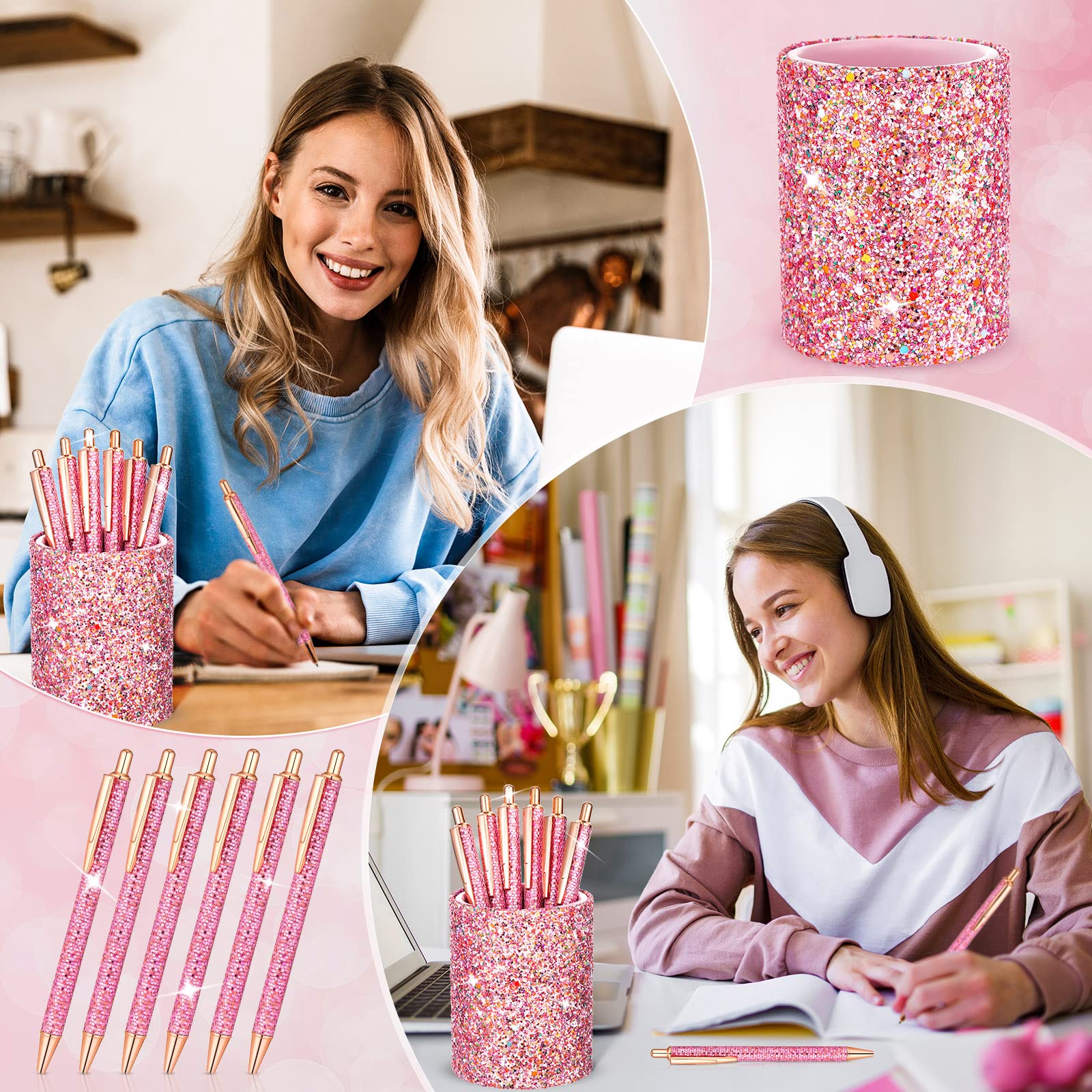 Get: package contains a bling bling pink leather pen holder and 6 sequin pens in pink color, put them together on your desk to make your desk look stylish and attractive
