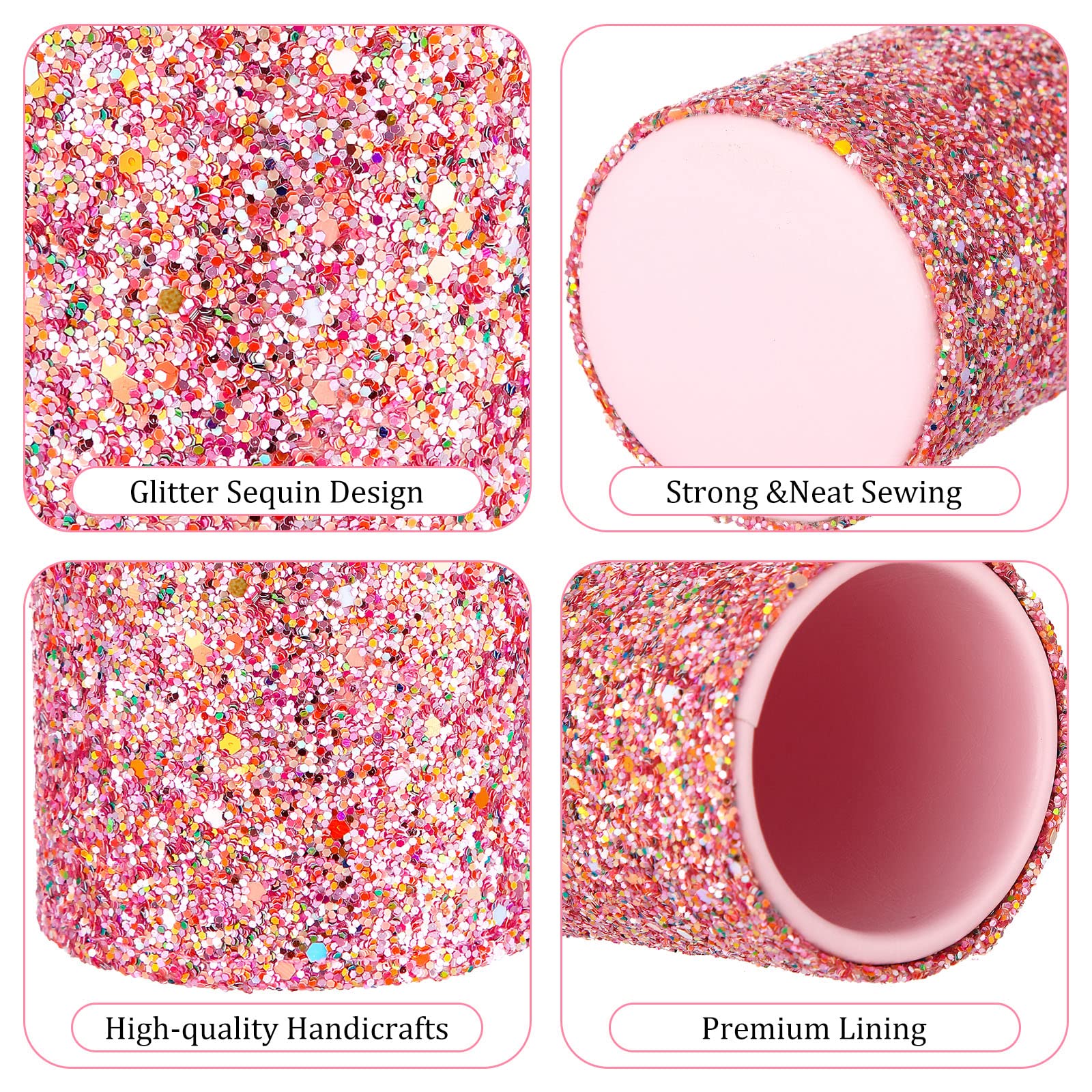 Stylish Office Set: the glitter storage pen holder in solid color with shiny elements is made of PU leather; These sequin pens are made of colored metal, decorated with stunning metal finishes and accessories, the body is decorated with large sequin shaped crystals, looks more bright