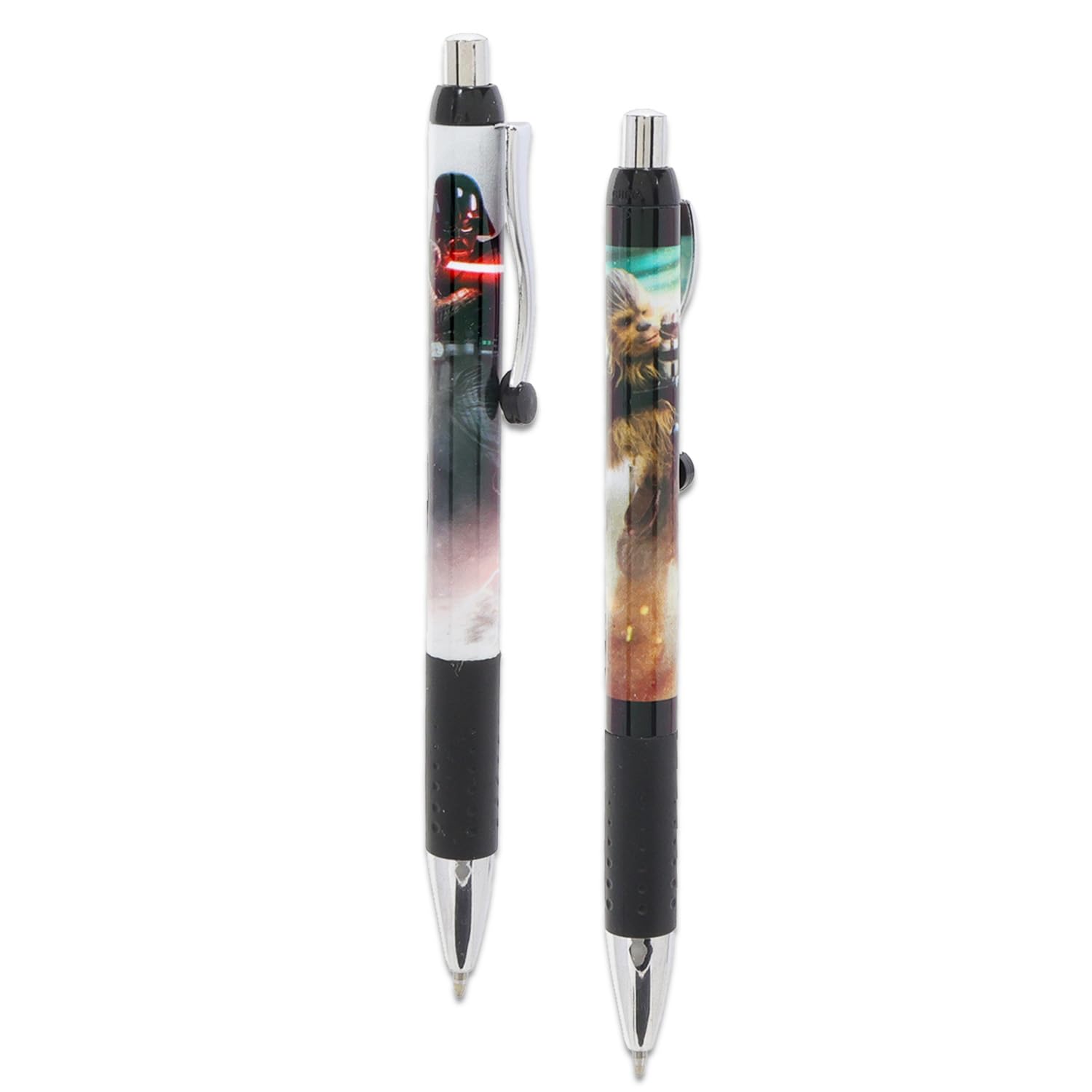 Star Wars Ballpoint Pen Set - Pack of 2 Rollerball Pens Featuring Darth Vader, Han Solo, Chewbacca and More | Star Wars School and Office Supplies. This deluxe Star Wars pen set features favorite characters from the show. This deluxe Star Wars pen set features favorite characters from the Classic Trilogy movies. Premium pens with clip, 0.70 mm line and black ink. Perfect as Star Wars school supplies, party supplies, party favors, stocking stuffers and more. Officially licensed Star Wars office supplies. A great addition to any Star Wars calendar or planner kit.