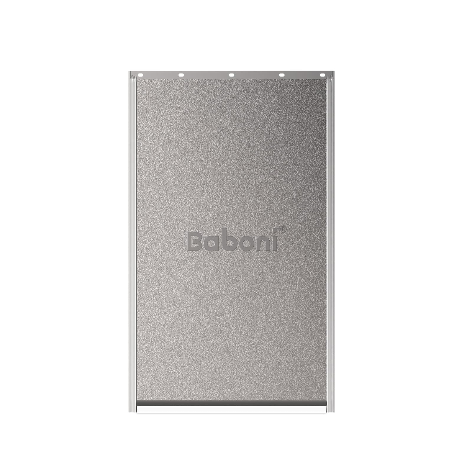 Compatible With Baboni Plastic Large pet door: Flap opening is 10 1/8 in x 16 7/8 in with 5 holes at the top of the flap for adjustment.