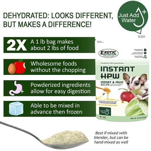 ✔ CONVENIENT - Instant-HPW is a vitamin-enriched, powdered sugar glider diet that mixes with water to form a soft, pudding-textured food.