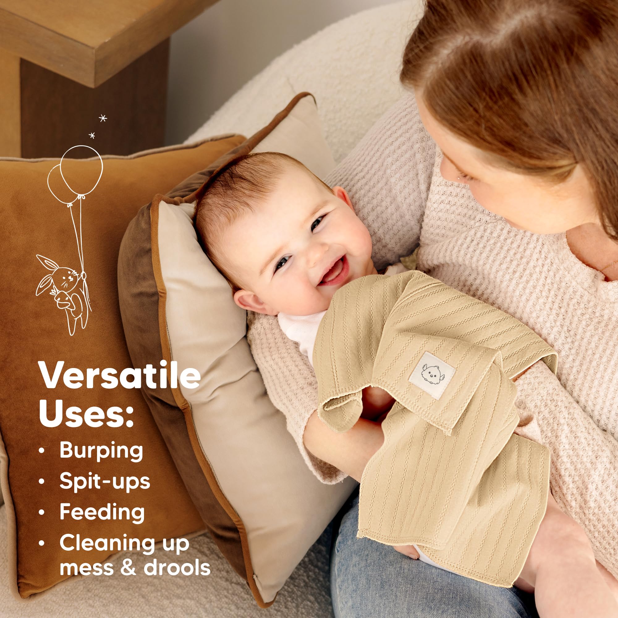 Fast Absorption, 2-Layer – Our 20"x12" thick burp clothes neutral offer large coverage to handle messes. 2-layer textured fabric boosts absorbency and plushness, effectively catching liquid and spit-ups, keeping both you and your baby dry and comfy.