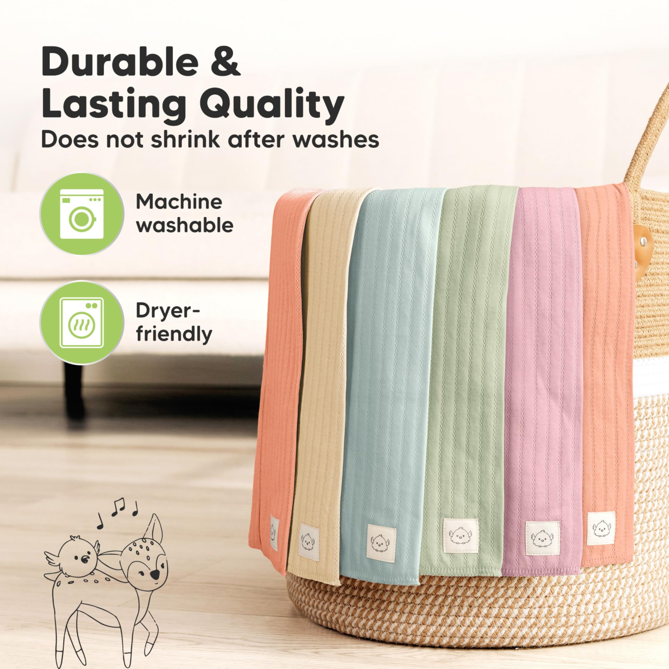 Durable - Our machine washable & dryable burping cloths for babies are intricately made for everyday use. Loved by modern parents for their lasting quality, the colors, softness & absorbency of these baby essentials remain even after multiple washes.