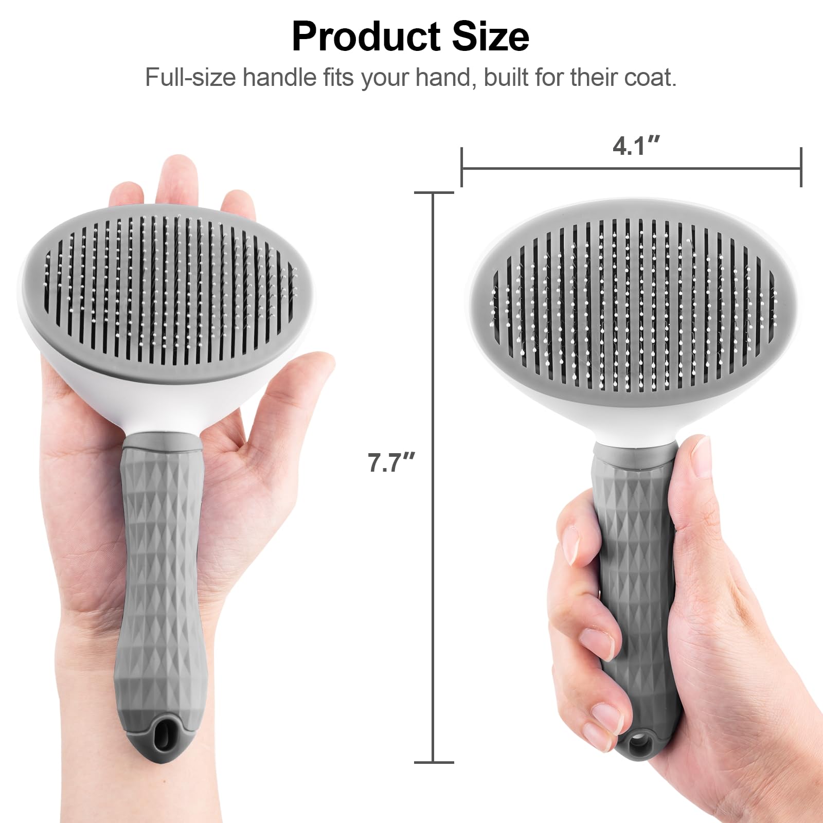 Comfortable and Nonslip Handle: Our cat shedding brush is designed with a comfort-grip and nonslip handle, and this self cleaning cat brush also has a massage function for your hand and you won't get tired easily when you brush your pet