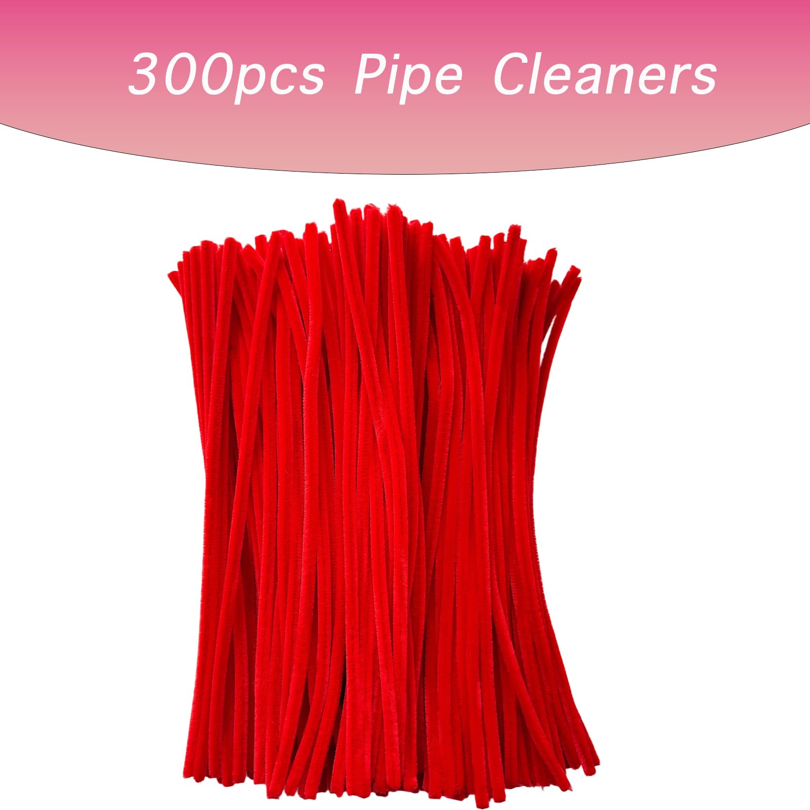 Pipe Cleaners: 300Pcs Red Pipe Cleaners Bulk - Christmas & Chinese New Year Chenille Stems, Thick Wires for DIY Poinsettias, Lanterns, Heart Crafts