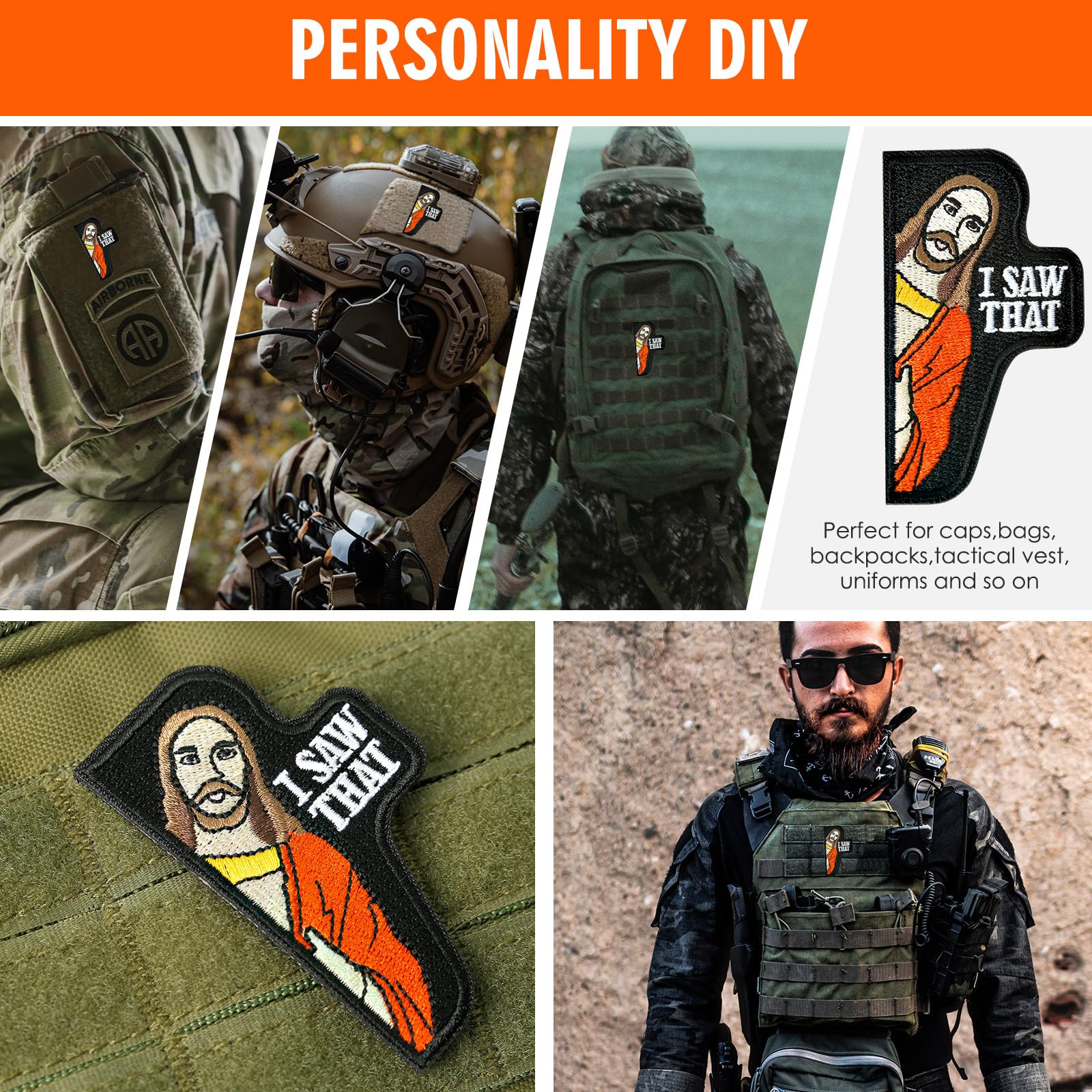 With Hook & Loop Fastener: The "i saw that" jesus patch is designed with hook fastener backing, so it can be secured easily to any loop surface for decoration.If you want to stand out from the rest, this funny patch can add a little edge to your gear