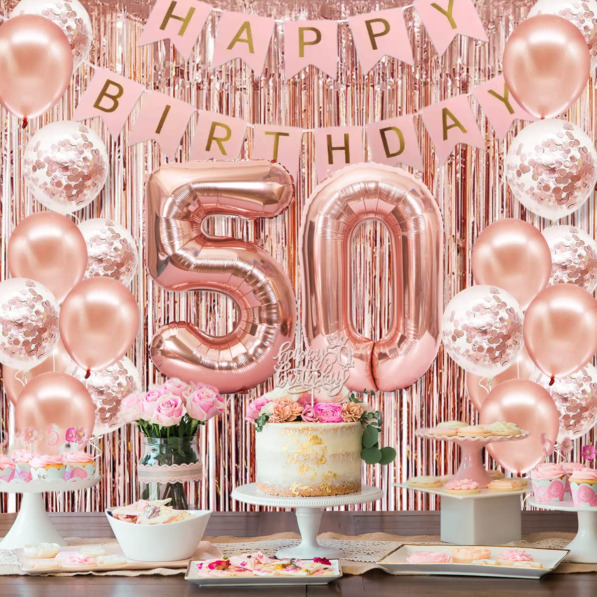 EASY TO INFLATE BIRTHDAY BALLOONS: 25pcs metallic rose gold balloons + 25pcs rose gold confetti balloons, 40 Inch rose gold number 50 balloons, when you use the included tools (ie straws, ribbons, balloon glue dot) you will easily filled with air or helium, These durable balloons will add beauty to a 50th birthday party.