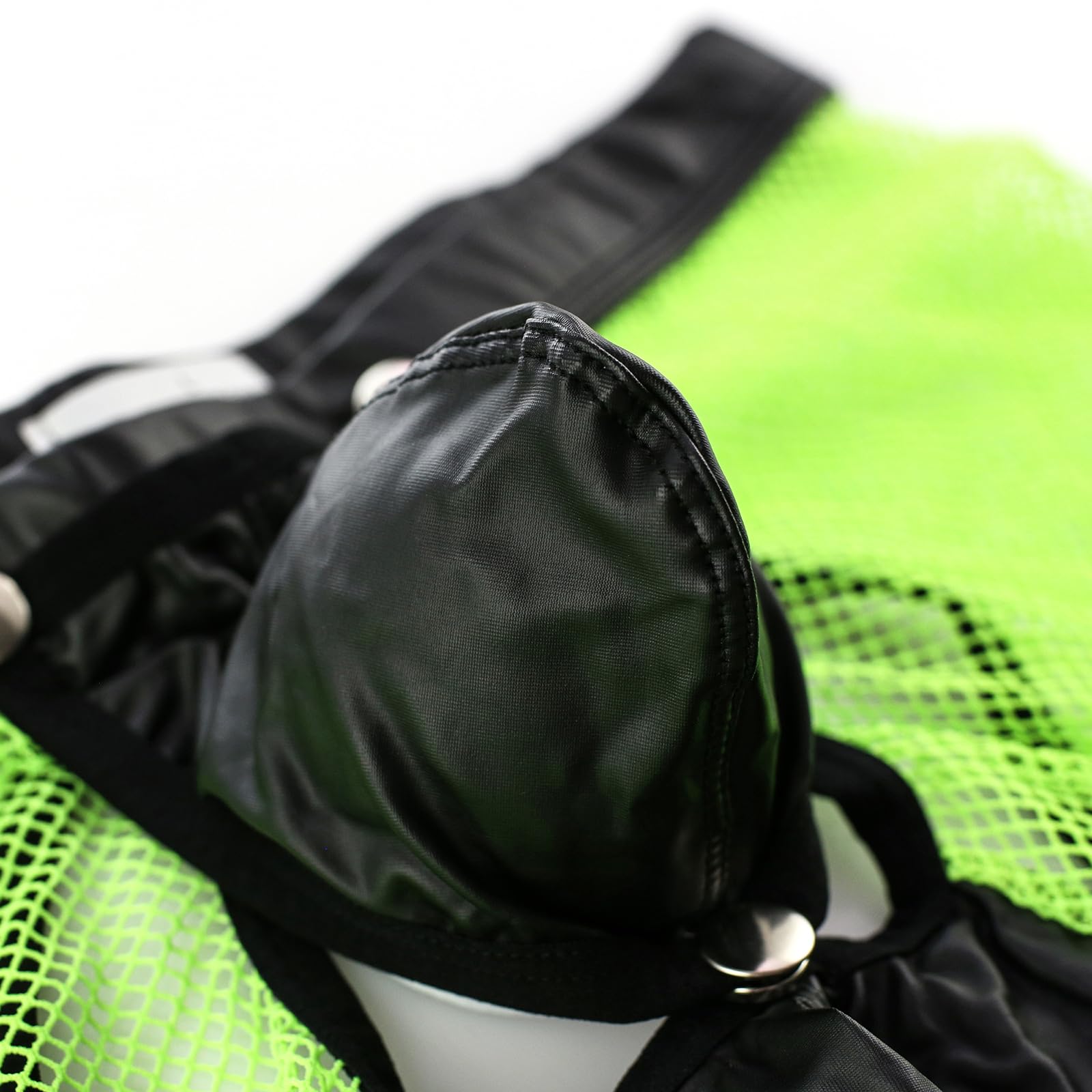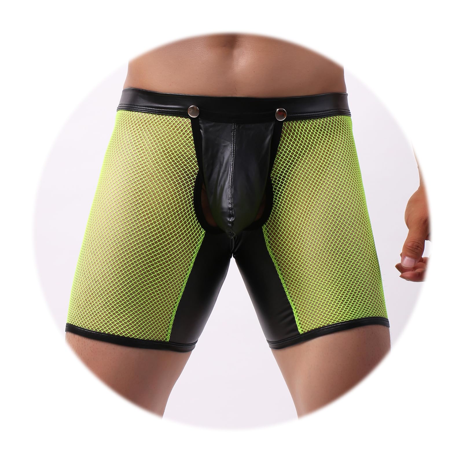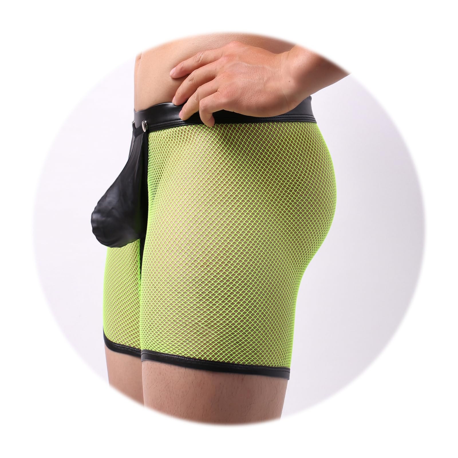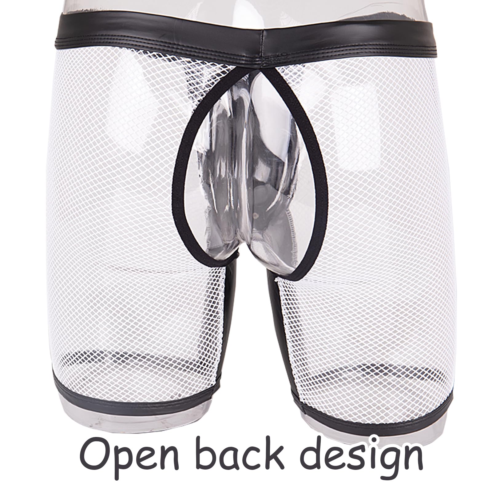 Smooth imitation leather fabric with soft mesh, comfortable pouch, is a very sexy underwear.