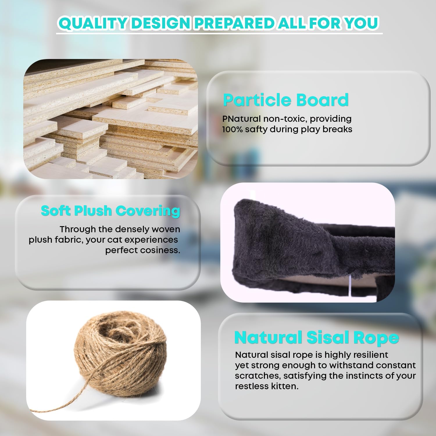 🐱 【Posts for Scratching Covered in Sisal 】These are scratching surfaces that are integrated into the framework. Cats love to bury their claws in sisal because it's a sturdy substance with a coarse texture. Our cat tree promotes healthy scratching habits and helps discourage cats from damaging furniture by offering dedicated spaces for them to scratch.