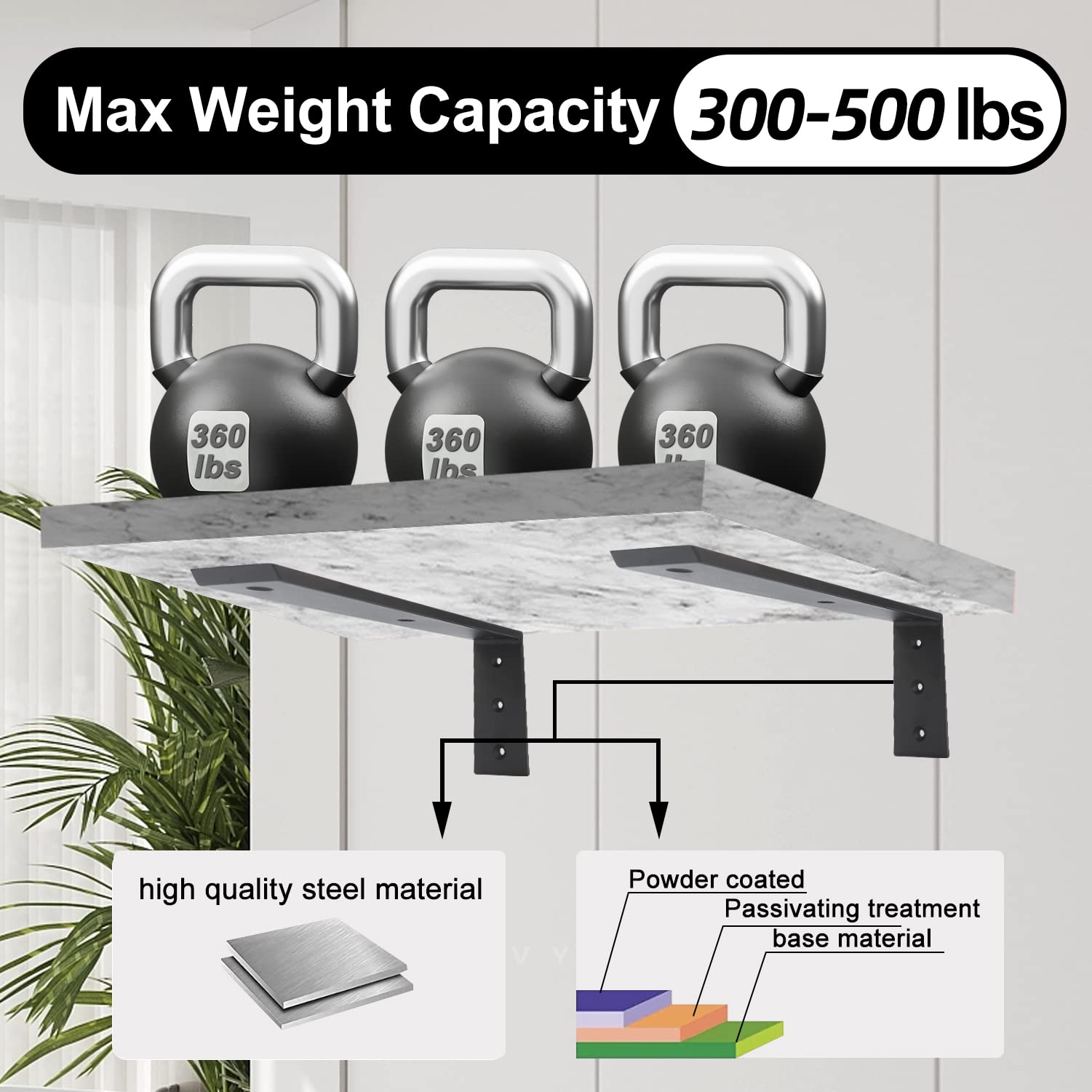 ✯Heavy duty: Granite countertops are heavy and require strong support. Our countertop bracket is made from heavy-duty 10mm thick iron to provide sufficient support and prevent the countertop from sagging or cracking. The weight capacity of our bracket is 300LB per pair. Our granite countertop brackets are designed to provide long-lasting, reliable support for heavy granite countertops, minimizing the risk of damage or failure over time.