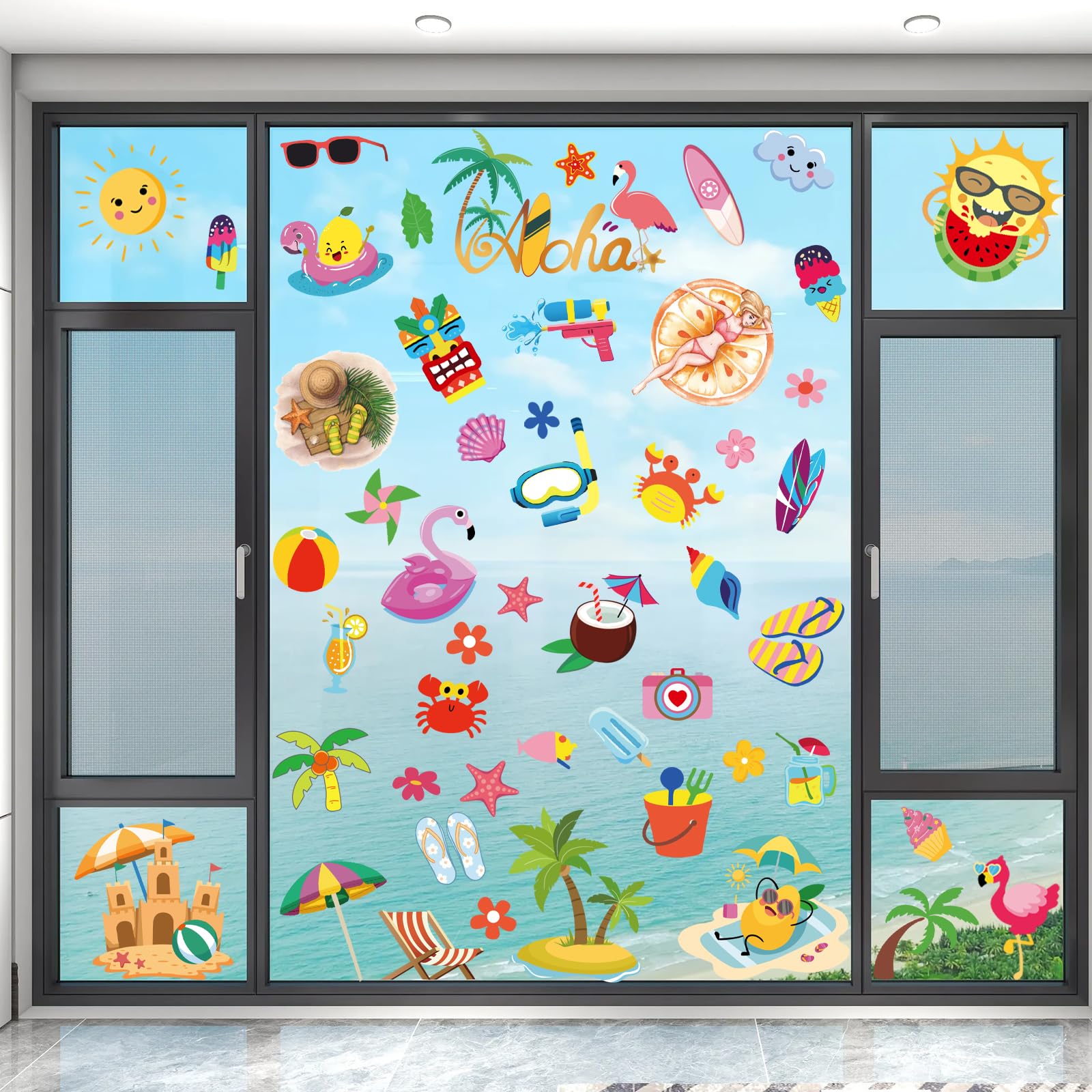 【Summer Decoration with Refreshing Colors】: Summer window decals feature fresh and cool colors such as blue, green, or white. These colors can create a sense of coolness that helps to alleviate the heat of the summer season.