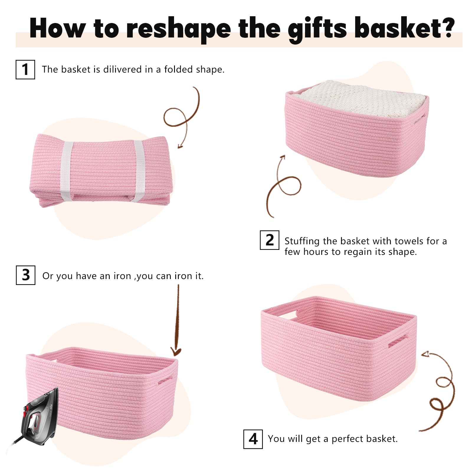 Easy to reshape: The toy basket arrives folded, once you receive it, remove it from its packaging and fill it with items such as clothing or dolls to help the baskets for shelves regain its shape. If you have an iron, you can also help it get back into shape quickly. If you have any questions about our products or services, please feel free to contact us