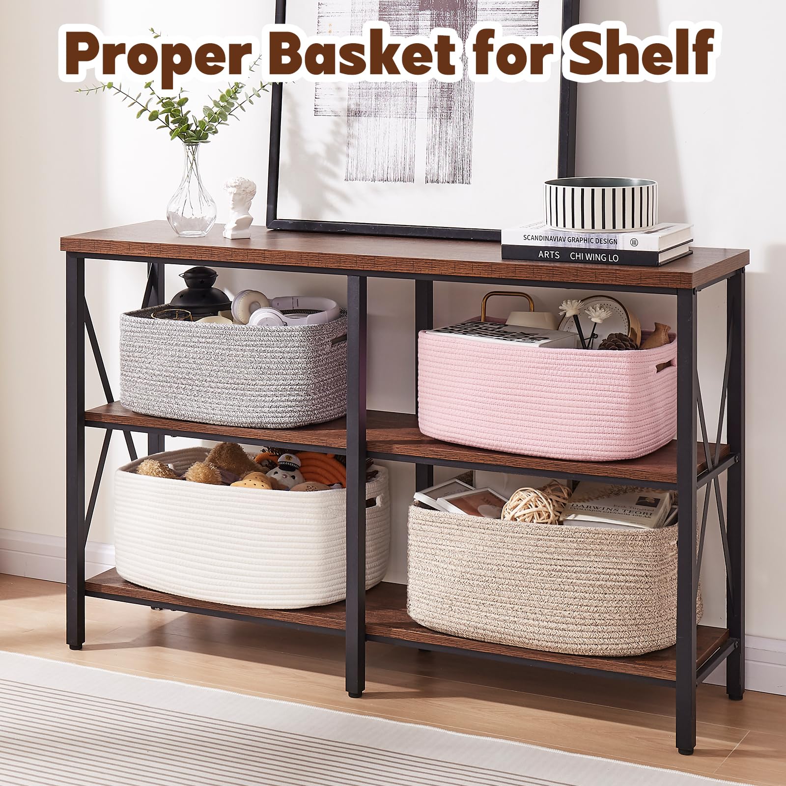 Large Capacity:15.75*11.81*7.09inches. This 2-pack rectangular baskets for organizing is the perfect "treasure chest" for household essentials. Such as books, knick-knacks, wallets, keys, sunglasses, crafts, stationery, gadgets, towels,clothes, socks and so on. You can get it easily just by moving your fingers