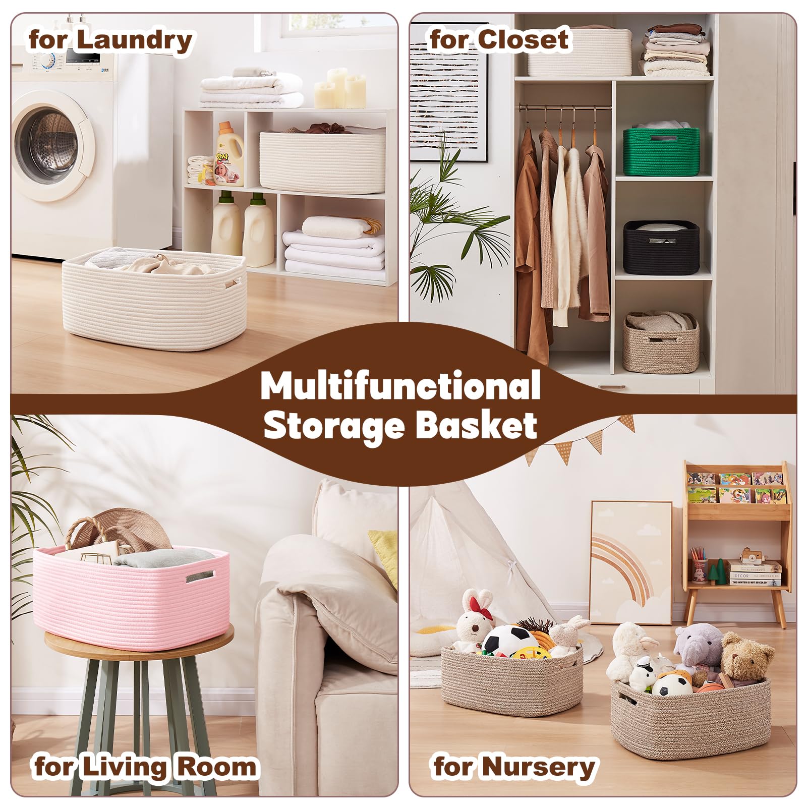 Flexible for Moving: Designed for your convenience, each large basket has two cut-out handles, perfect for picking up toys or carrying items around the house. In the recreation room, game room, pet room, living room, bedroom, nursery, bathroom, laundry, pantry, pantry, craft room, home office and even garage, you can enjoy the flexibility and convenience by the woven baskets and make life full of possibilities