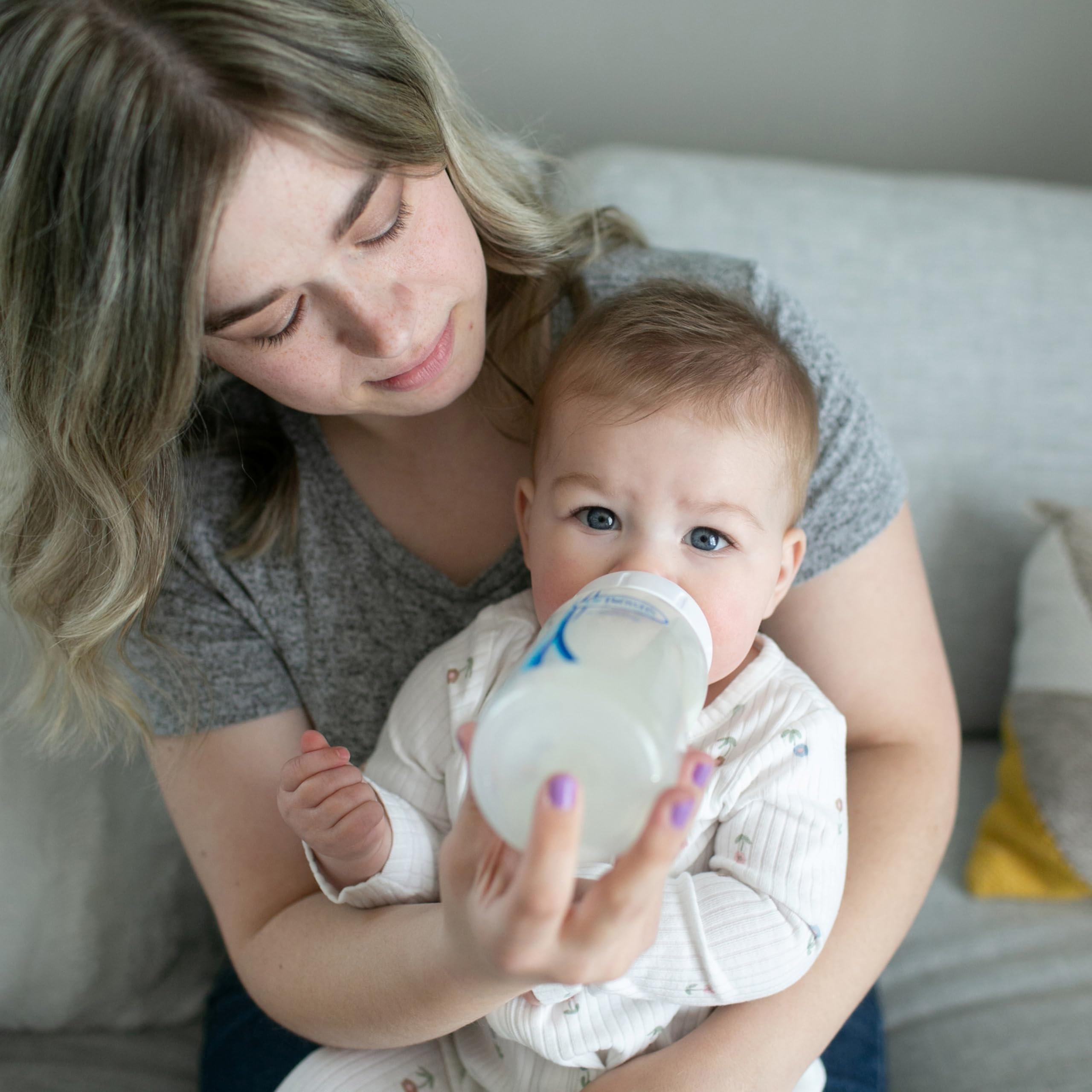 BREASTFEEDING BOTTLE. The breast-like nipple shape encourages a proper latch for a more natural bottle feeding experience and eases the transition from breast to bottle and back again.