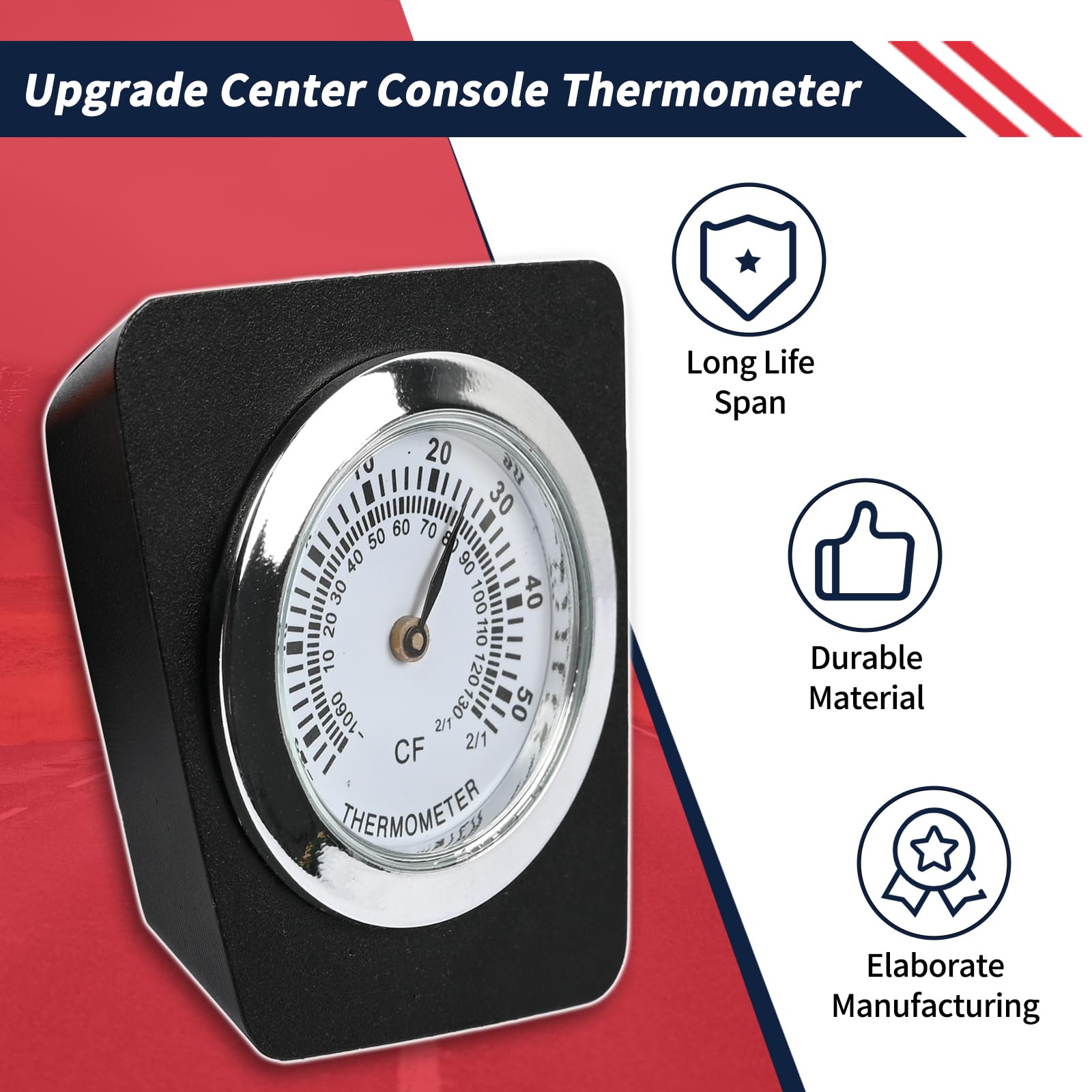 [High Quality]: More than just a tool, our thermometer features an elegant design that seamlessly integrates into your Vehicle. Meticulously constructed from premium components, it delivers unwavering accuracy and a long service life, enhancing your daily drive with comfort and peace of mind.