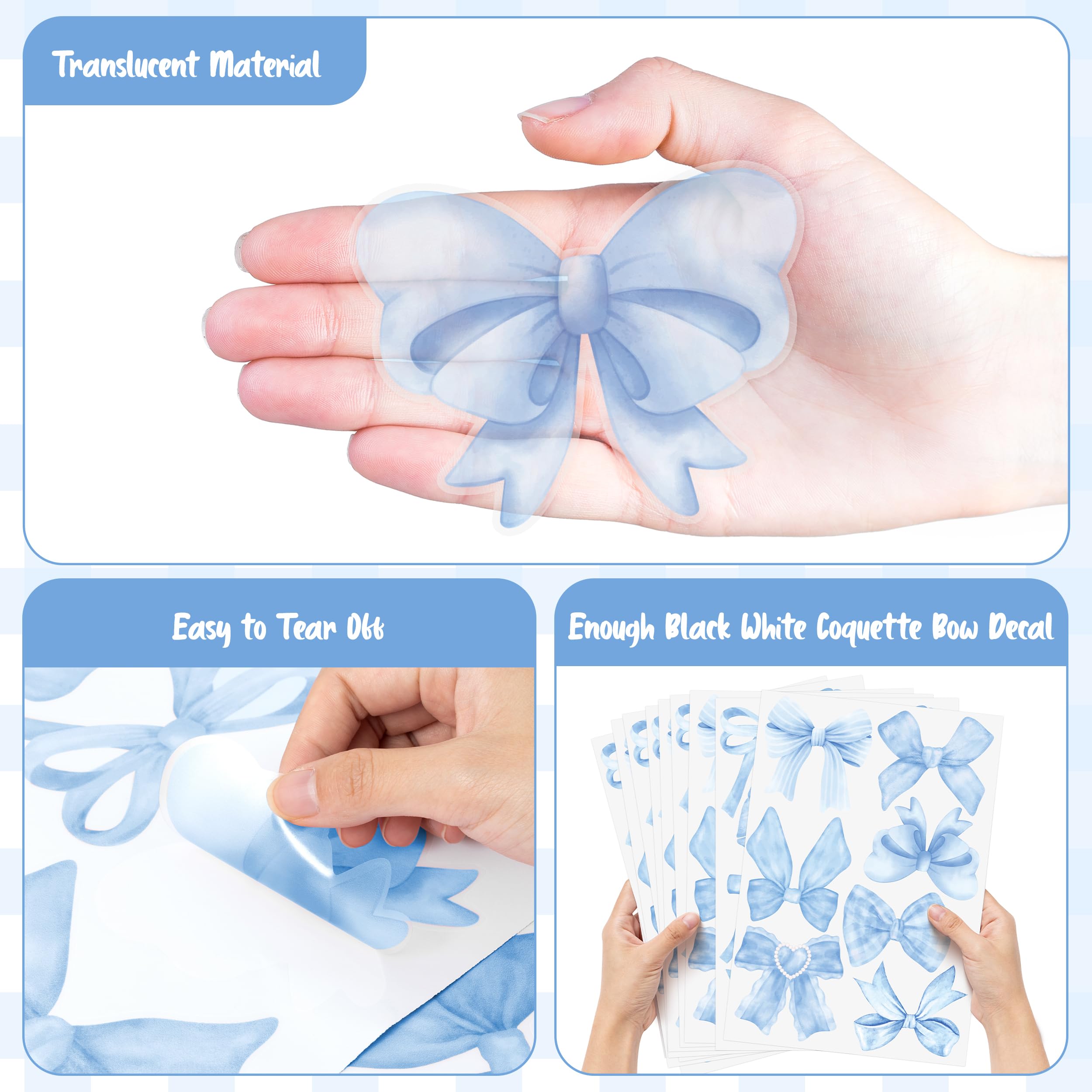 Unique Trendy Blue Bow Design: These wall stickers feature a beautiful watercolor blue bow design. The soft, flowing colors and delicate details add a touch of elegance and creativity to any space. The watercolor effect gives each bow a unique, hand-painted look, making them stand out as a charming decorative element.