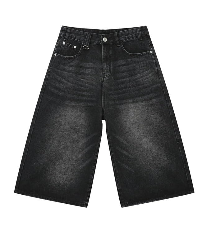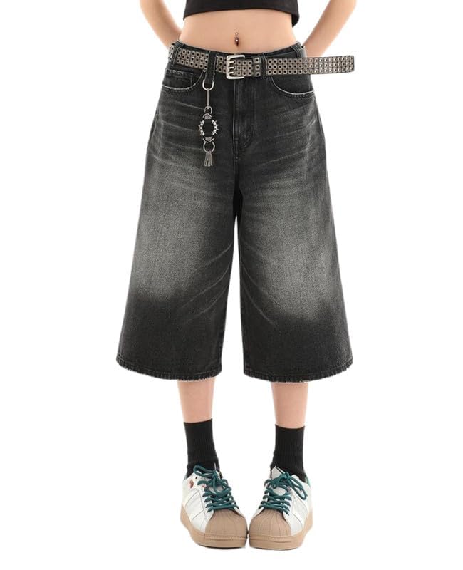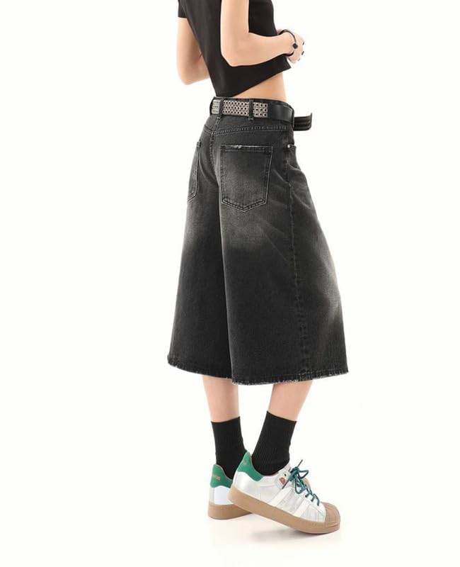 Design: Capri jeans for women with loose fit, simple Plain design, y2k style jean shorts ,goth,grunge hip-hop style, harajuku baggy jorts