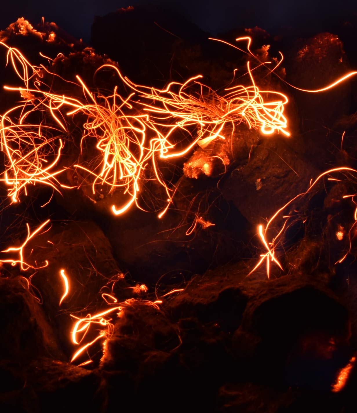 MATERIAL SPECIFICATION – Neon Embers are made from high temperature metal fibers, with a service temp of 1650F or 900C and a melting point of 3200F or 1760C.