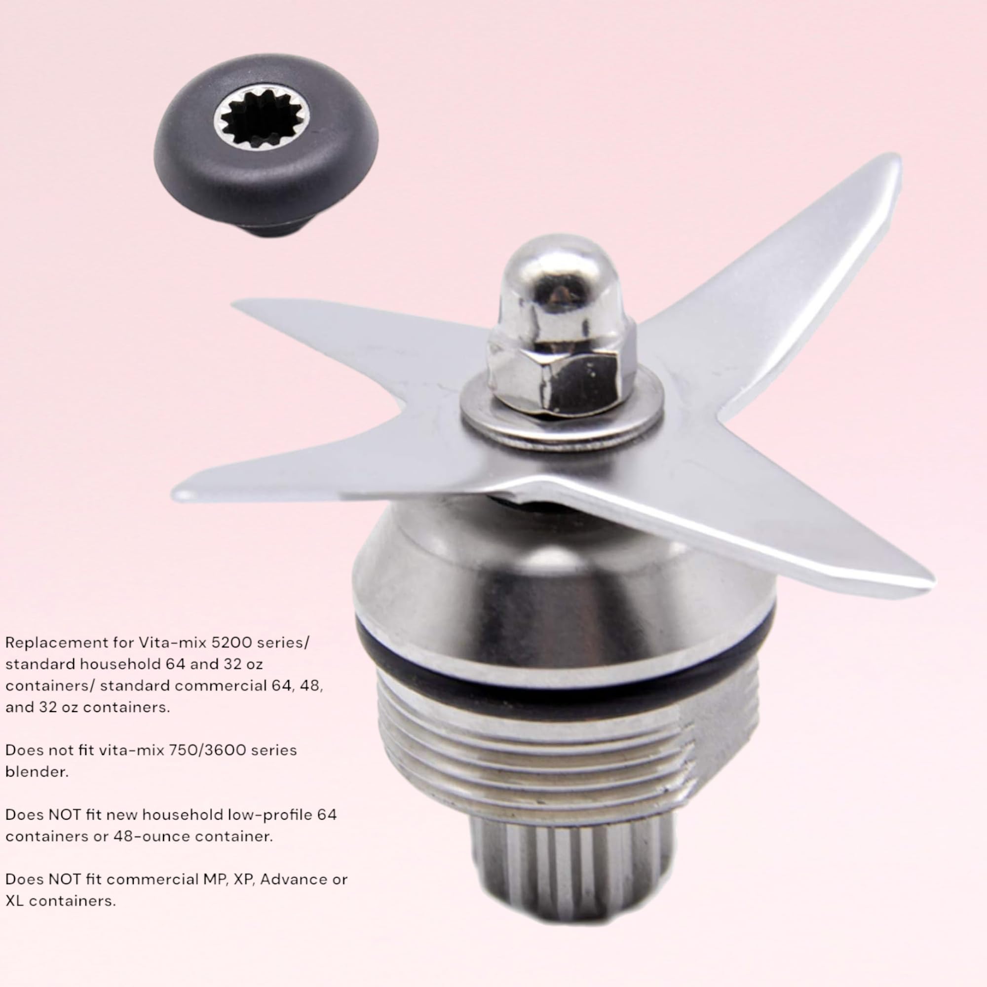 NOTE: 4 Knife Blade Replacement for Vita-mix 5200 series/standard household 64 and 32 oz containers/ standard commercial 64, 48, and 32 oz containers. Does not fit vita-mix 750/3600 series blender. Does NOT fit new household low-profile 64 containers or 48-ounce container. Does NOT fit commercial MP, XP, Advance or XL containers.