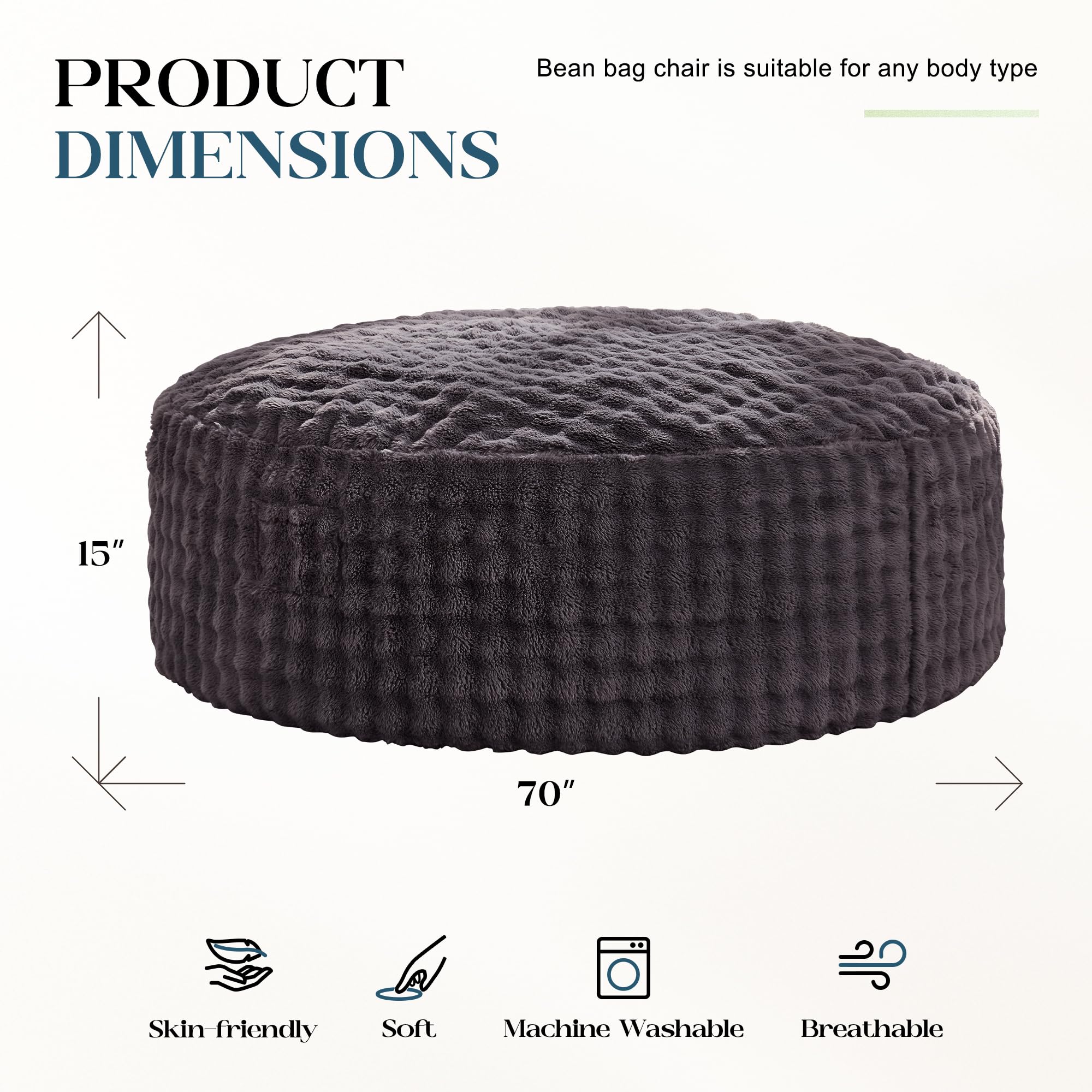 2-in-1 Usage: This large bean bag chairs offers two ways to use. Flip it over for added support, adapting to different scenarios for enhanced comfort and functionality.