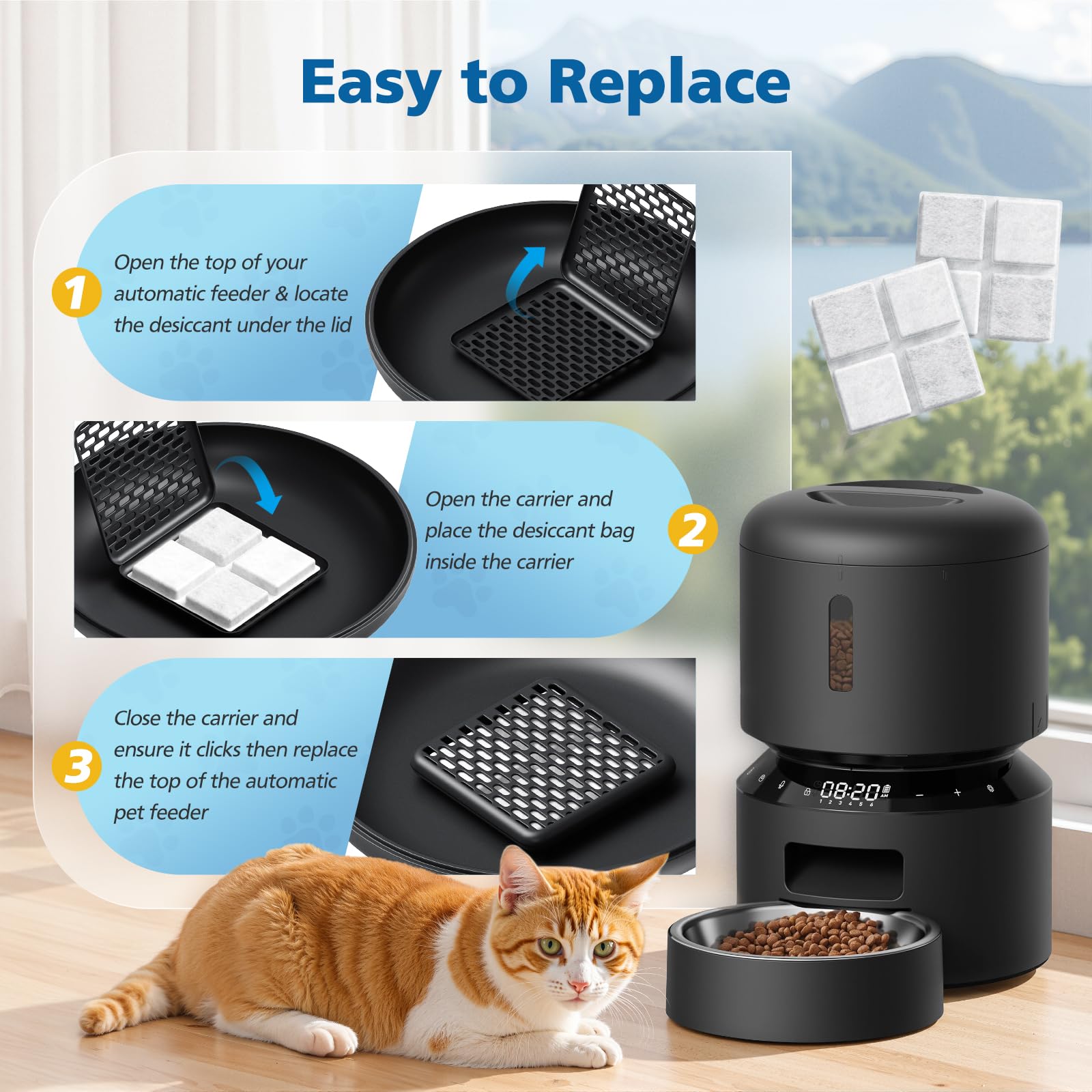 【REGULAR REPLACEMENT】: It is recommended to replace our pet food desiccant bag once every half month for maximum freshness and hygiene of pet's food. In areas with high humidity or if you have a large amount of food, you may need to replace them more frequently