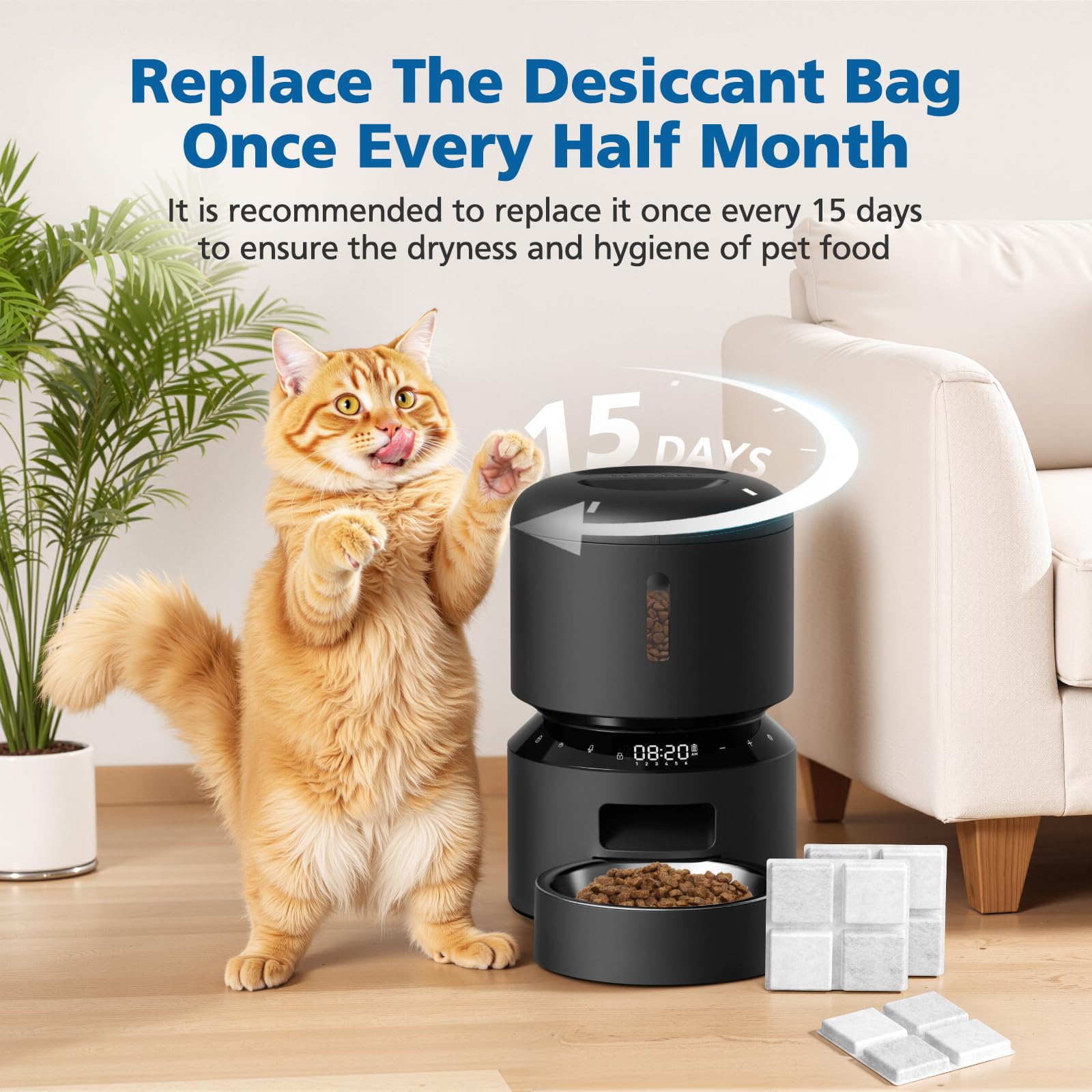 【WIDE COMPATIBILITY】: Our pet food desiccant bags are compatible with Petlibro Automatic Cat dog Feeders, Model: PLAF001, PLAF002, PLAF101, PLAF103, PLAF203, PLAF301, PLAF005 and PLAF006. Compatible with other same size placed in the drying box inside the lid of the feeder. Preserves cat and dog food freshness