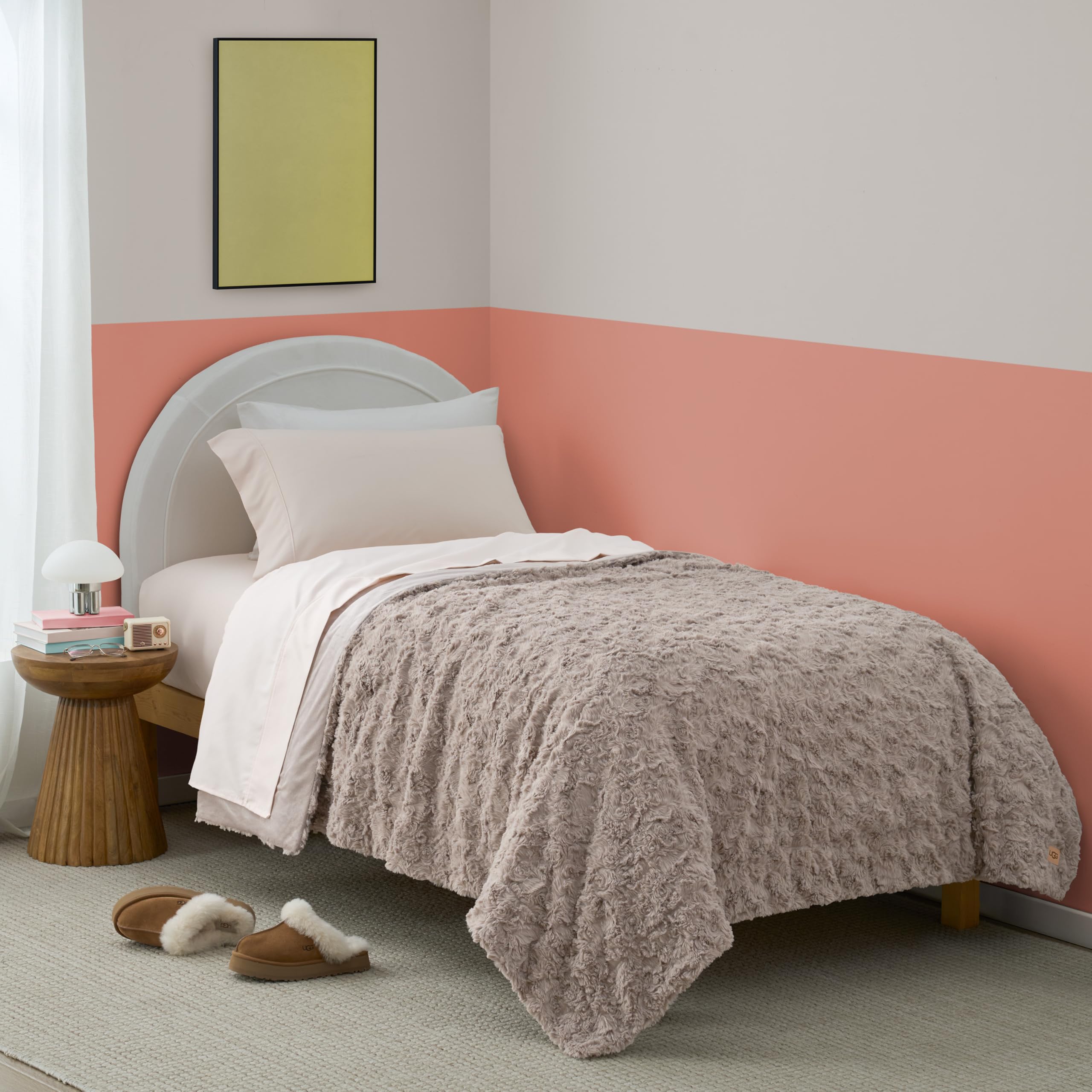 UGG Adalee Faux Fur Twin/Twin XL Blanket: Wave-textured plush in cozy brown brings bedroom decor. This ultra-soft, warm bed blanket layers easily over sheets or comforters—made for snug nights and winter weather.