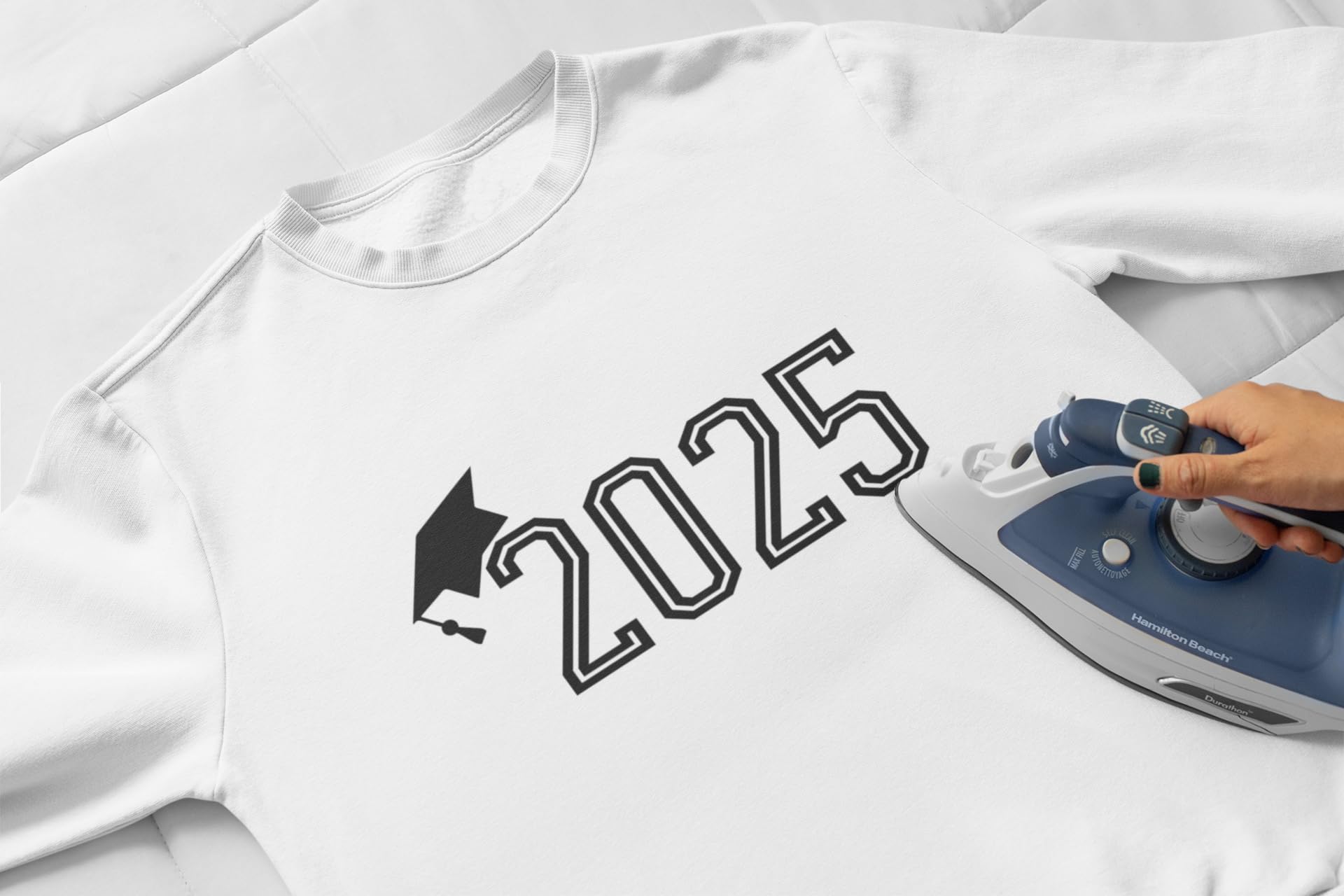 Details: You will receive one single 2025 senior iron on decal with the year of your choice. Choose from Glitter or Non-Glitter Colors! 4 sizes available. Background of letters are clear and transparent. All decals come with parchment paper for free!