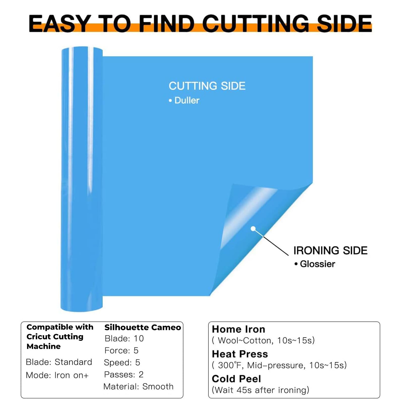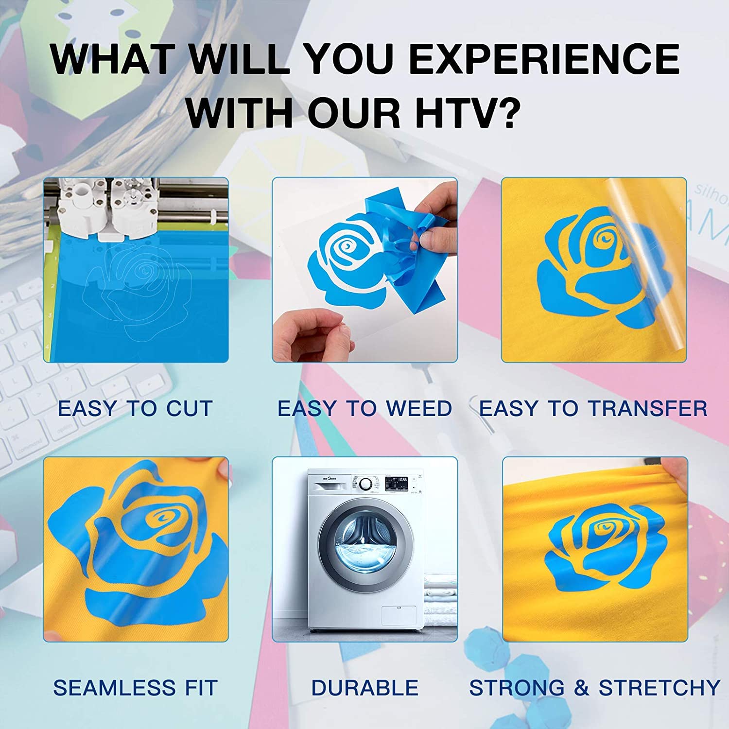 EASY CUT & WEED & TRANSFER: Our premium quality heat transfer vinyl will save your time which you may waste on each image or letter, because you can cut and weed easily through the designs just right.The iron on vinyl is sensitive to temperature and pressure, which can be heat transferred on any t-shirt easily